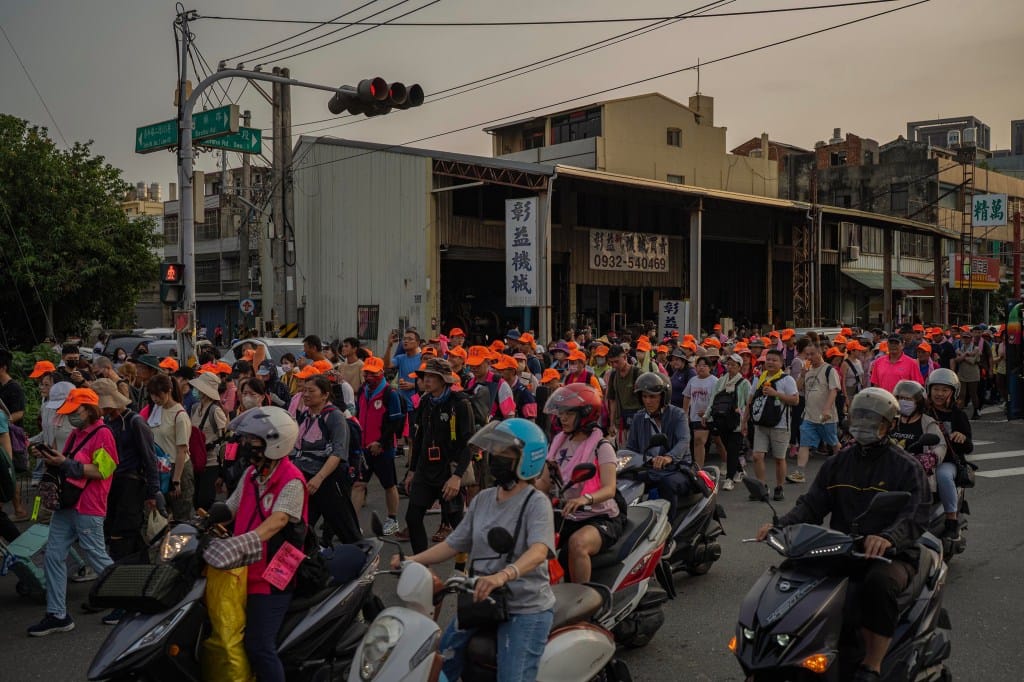 2025年5月8日,彰化,紧随白沙屯妈祖的信众。摄:唐佐欣/端传媒