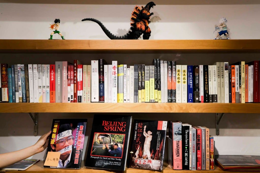 在深水埗,獨立書店「獵人書店」正進行六四書籍和刊物的拍賣。店內十多本拍賣品陳列在書架上,包括《明報》出版的六四圖片誌《悲壯的民運》、美國攝影師 Peter Turnley 和 David Turnley 的攝影集《Beijing Spring》,以及文匯報出版的特刊《血洗京華實錄》。
