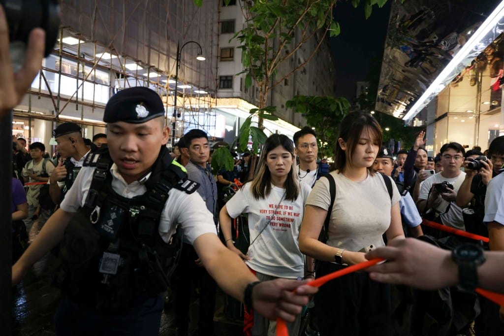 較早前的傍晚6時,一名中年女子戴口罩和身穿黑衣、手持白花行走在記利佐治街上。警方瞬間將她包圍,以橙帶將她和傳媒分隔,又搜查她的背包。她最終被送至銅鑼灣站離去。