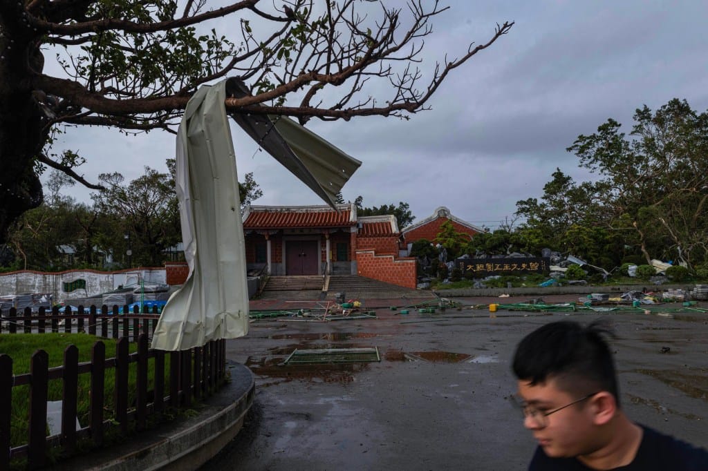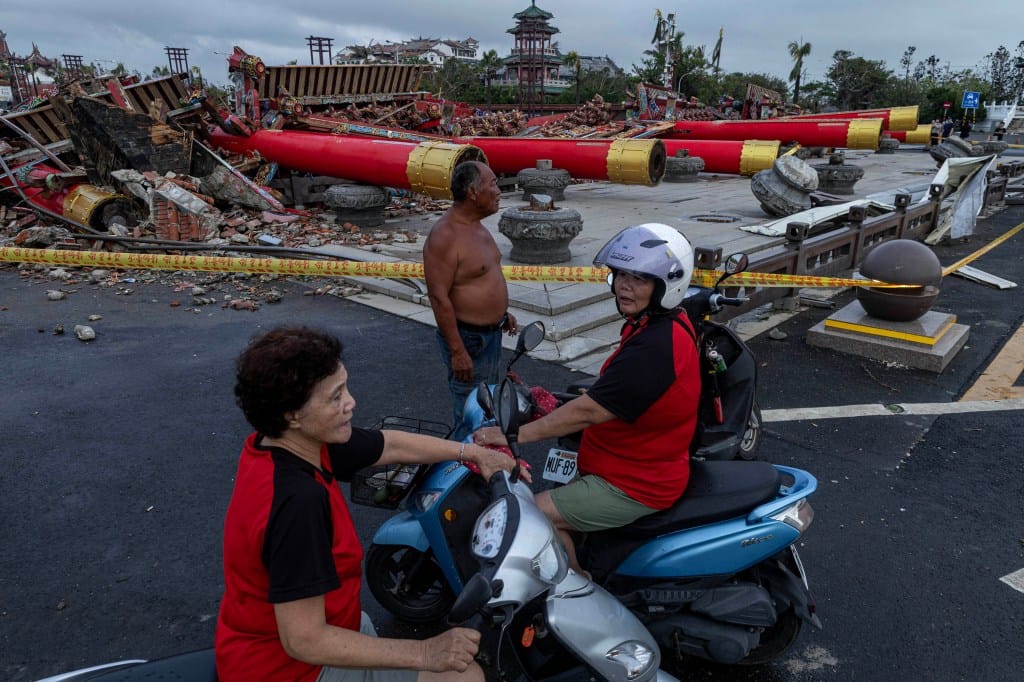 首當其衝的台南市區,今晨市容滿面瘡痍,大量路樹倒塌、鐵皮屋傾斜的狀況,北門南鯤鯓代天府前的大牌樓亦被強風吹垮,廟裡大淹水。廟方指出,該牌樓有40多年歷史,由12根價值不菲的千年檜木,以古早工法所建造,但因基座較淺、加上年久材質可能腐朽,終不敵強風而倒塌。廟方未來也將設法重建。