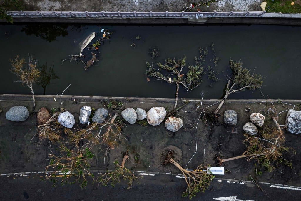 2025年7月7日,台南,颱風後,南鯤鯓代天府旁的公園。攝:陳焯煇/端傳媒