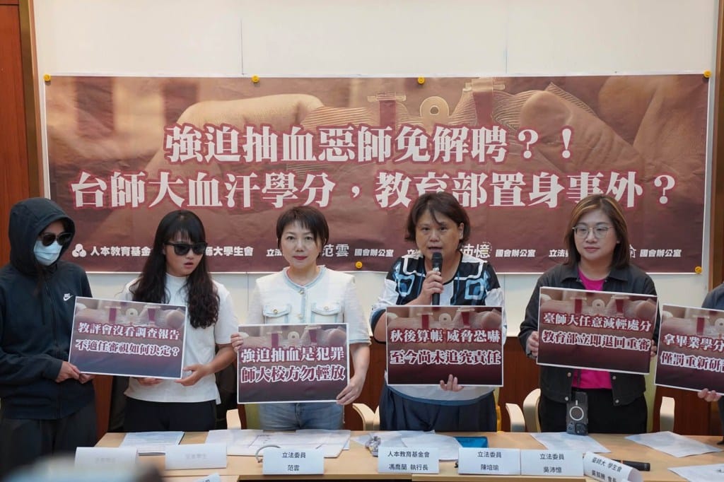 陈培瑜也揭露,台师大在立法院质询当日发表声明,指参与抽血学生均事先知情并同意参与,“受害者指控部分内容与事实不符”。但后续才发现,在这份声明发布之前,台师大根本没有正式组成调查委员会,仅依照教练初步陈述作为校方声明一句。