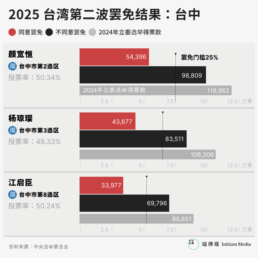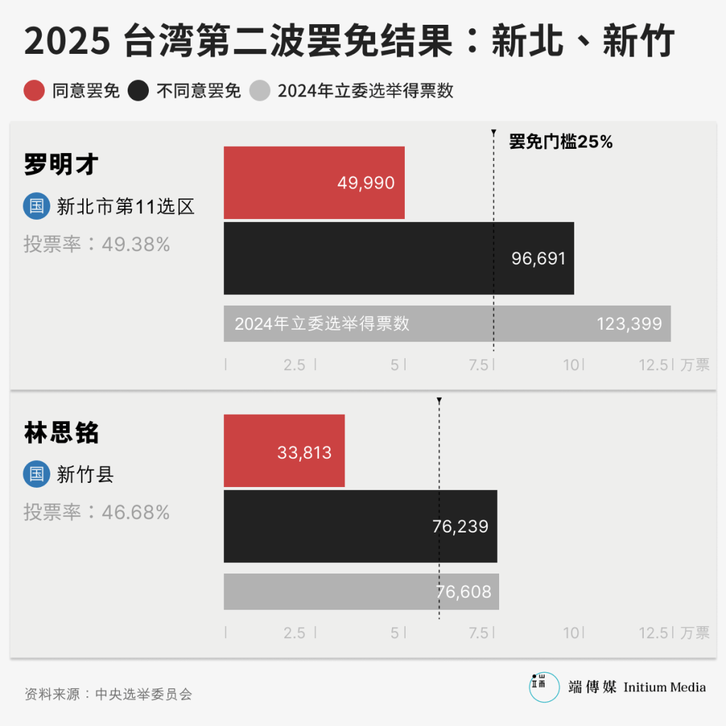 台湾前所未见的“大罢免”浪潮于23日举行第二波投票,针对新北市、台中市、新竹县、南投县四地合共七名国民党立法委员的罢免案进行投票;“核三重启”公民投票也在全台同步进行。最终,蓝营复制726第一波罢免投票的战果,七位蓝委全数保住职位,宣告公民团体发起的全台罢免行动全面失利。