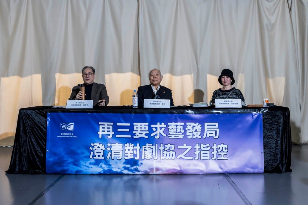 其他争议包括,2023年香港舞台剧奖邀请《铿锵集》前港台记者蔡玉玲和政治漫画家尊子作颁奖嘉宾,被香港艺术发展局称损害声誉并撤销资助,康文署亦停止赞助场地,主办机构其后自资举办颁奖礼。另外,聋人舞蹈团“森林乐”原定在2024年3月上演的共融舞台剧亦被取消,有说法指此举系因其团长黄耀邦曾在2019年民间记者会中作手语翻译,并演绎《愿荣光归香港》手语版本。