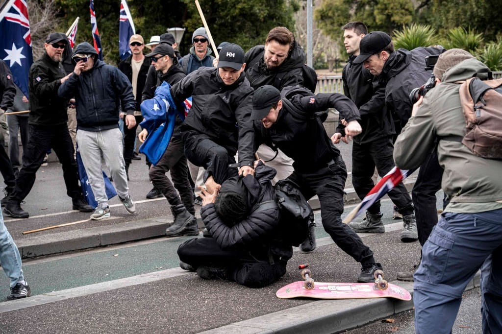 遊行過程中,墨爾本的反移民隊伍與支持巴勒斯坦的隊伍發生衝撞,並伴有肢體衝突。