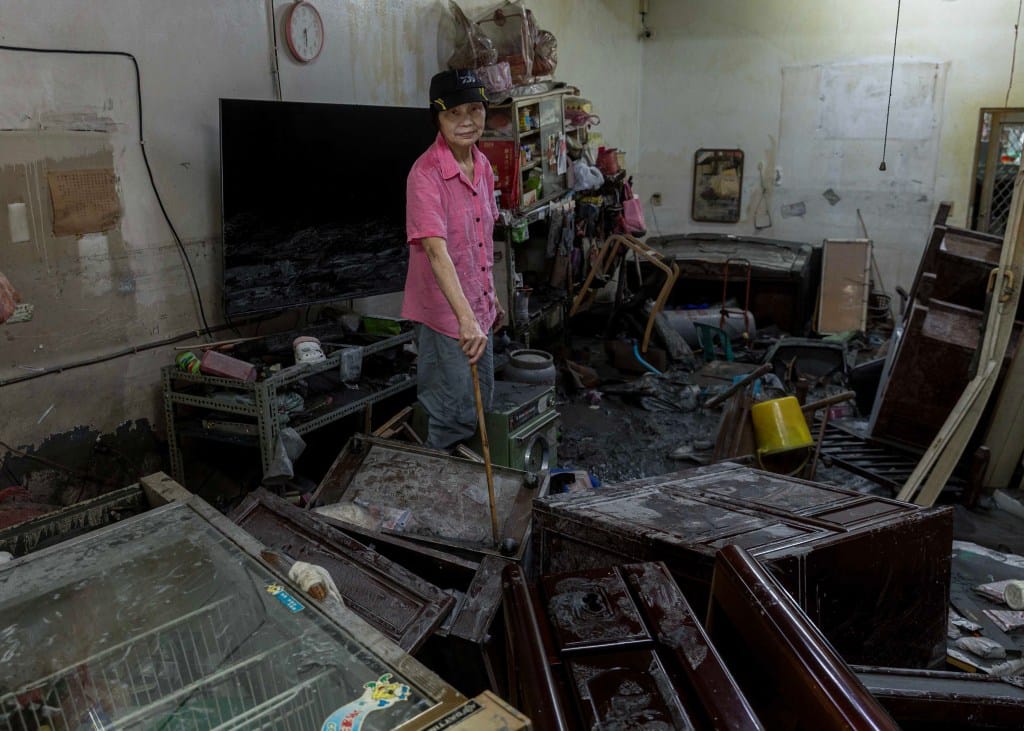 2025年9月24日,花蓮光復鄉,市區內一間民宅被洪水破壞。攝:陳焯煇/端傳媒