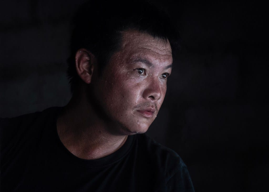 2025年9月30日,花蓮光復鄉,一名居民清理被淤泥覆蓋的房子,滿臉汗水。攝:陳焯煇/端傳媒