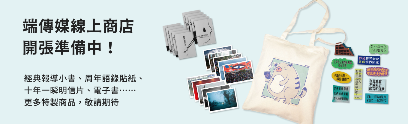 ● 端傳媒線上商店現正升級中,預計將於 2025/11/30 開張,除了有端傳媒限定實體周邊商品、電子書還有其他電子商品,敬請期待!