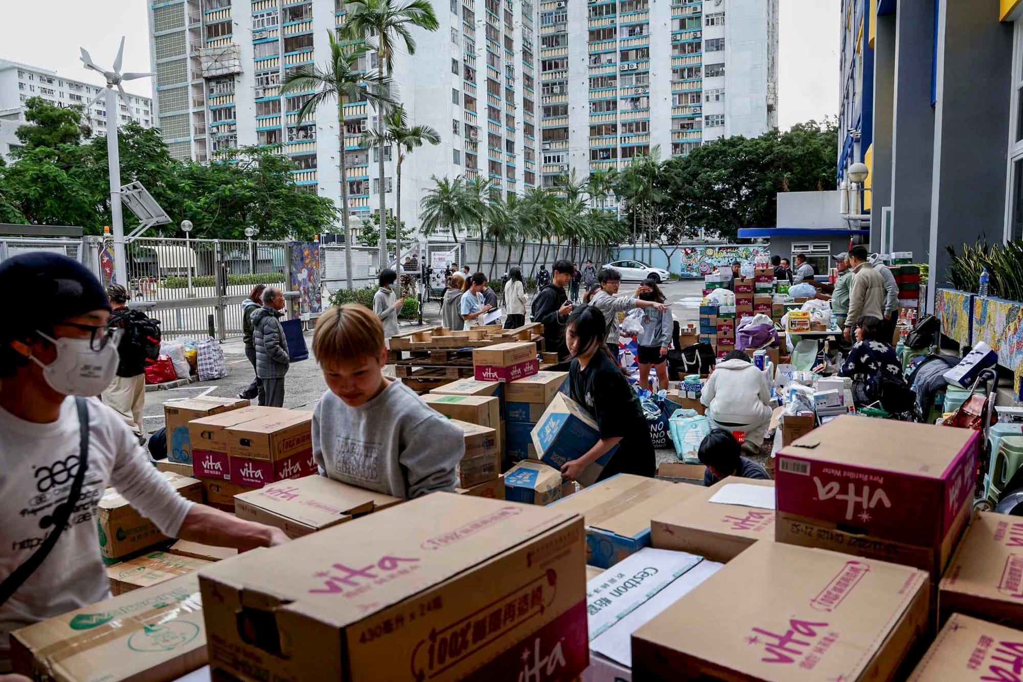 消防处目前仍在外围用8架钢梯旋转车减低外围热力、阻止蔓延,同时动用4架无人机进行热力监察,持续注意是否出现死灰复燃。而在火场之外,大批香港市民和小商家也自发动员,自行购买物资捐赠,还有多处出现志工「人链」传递物资。不过物资已将收点塞爆,当局呼吁暂停捐赠。