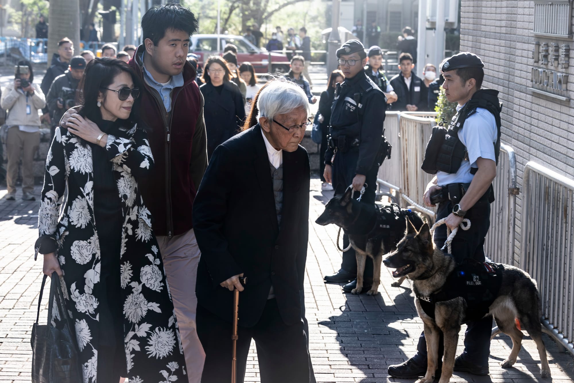 听众席上,黎智英妻子李韵琴及幼子黎顺恩、陈日君枢机也在法庭外进场。在上一次结案陈词期间,法庭不允许听众席向犯人打招呼、送祝福。