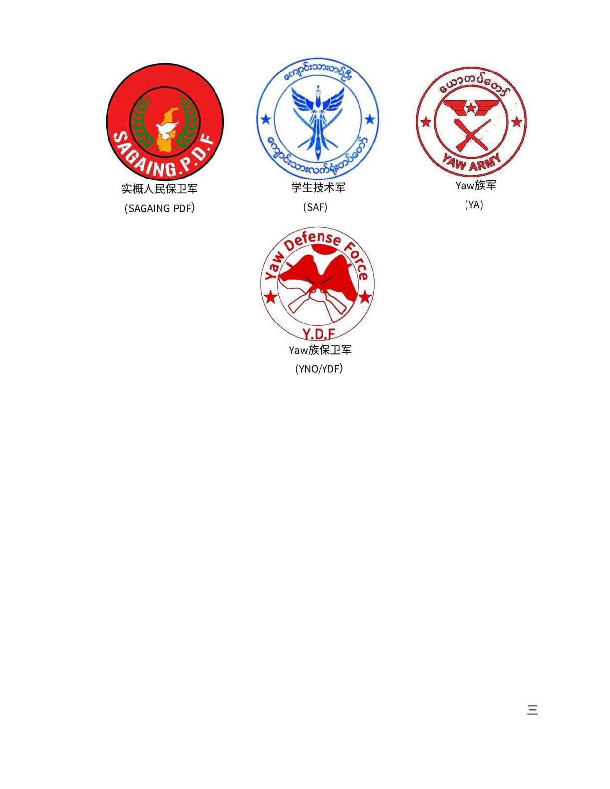 在这封承诺书之下,按字母顺序罗列了参与联合阵线的19支武装组织名称。与克钦独立军(KIA)、克伦民族联盟(KNU)、若开军(AA)这类长年与缅甸国防军对抗的少数民族武装不同,这19支部队均成立于2021年缅甸军方发动政变之后,是为「春天革命」而生的武装。他们的兵源以参与「公民不合作运动」的学生、教师、公务员,战争导致的流离失所者,以及地方社区自发组织的防卫队为主。