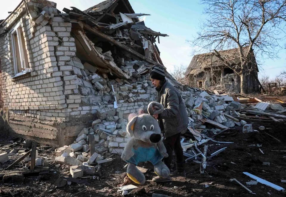 2025年2月9日,俄羅斯襲擊烏克蘭期間,烏克蘭頓內茨克州科斯蒂安丁尼夫卡鎮居民娜塔莉亞正在收拾孫女的玩具,這些玩具散落在她家各處。攝:Anatolii Stepanov/Reuters/達志影像
