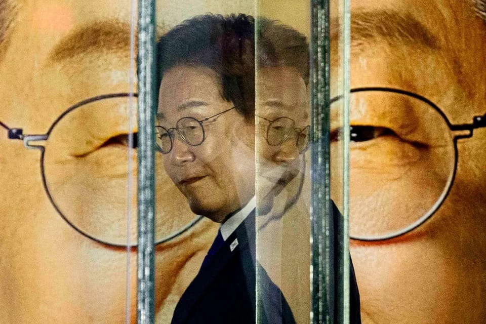 2025年6月4日,南韓首爾,共同民主黨推薦的總統候選人李在明在總統選舉最終結果揭曉後,準備向支持者發表講話。攝:Anthiny Wallance/AFP via Getty Images