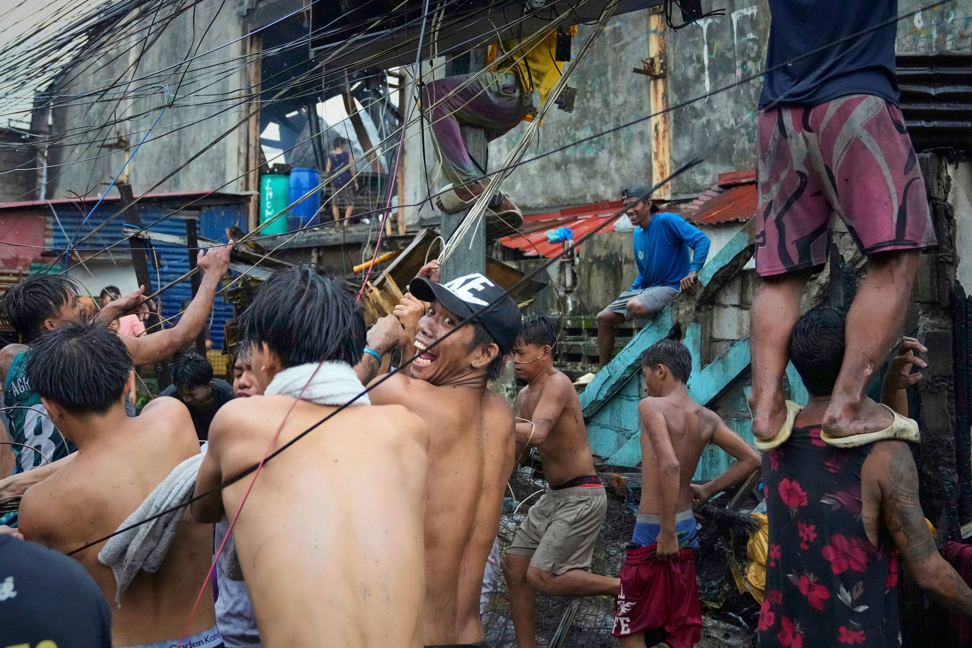 2025年8月6日,菲律賓馬尼拉,一個貧困社區被大火摧毀後,居民正在回收電線去出售。攝:Aaron Favila/AP/達志影像