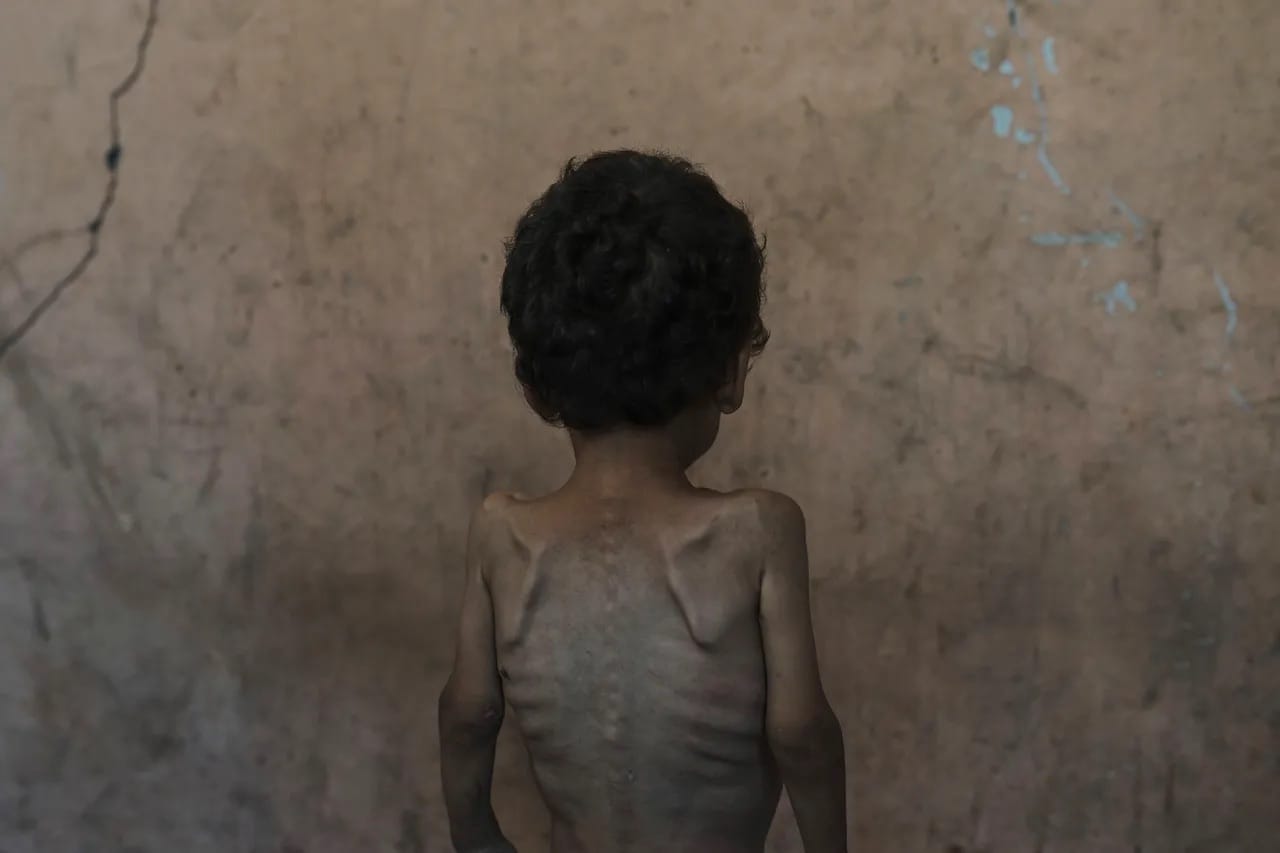 2025年7月23日,兩歲的營養不良兒童Yazan Abu Ful 在加沙城沙提難民營的家中。攝:Jehad Alshrafi/AP/達志影像