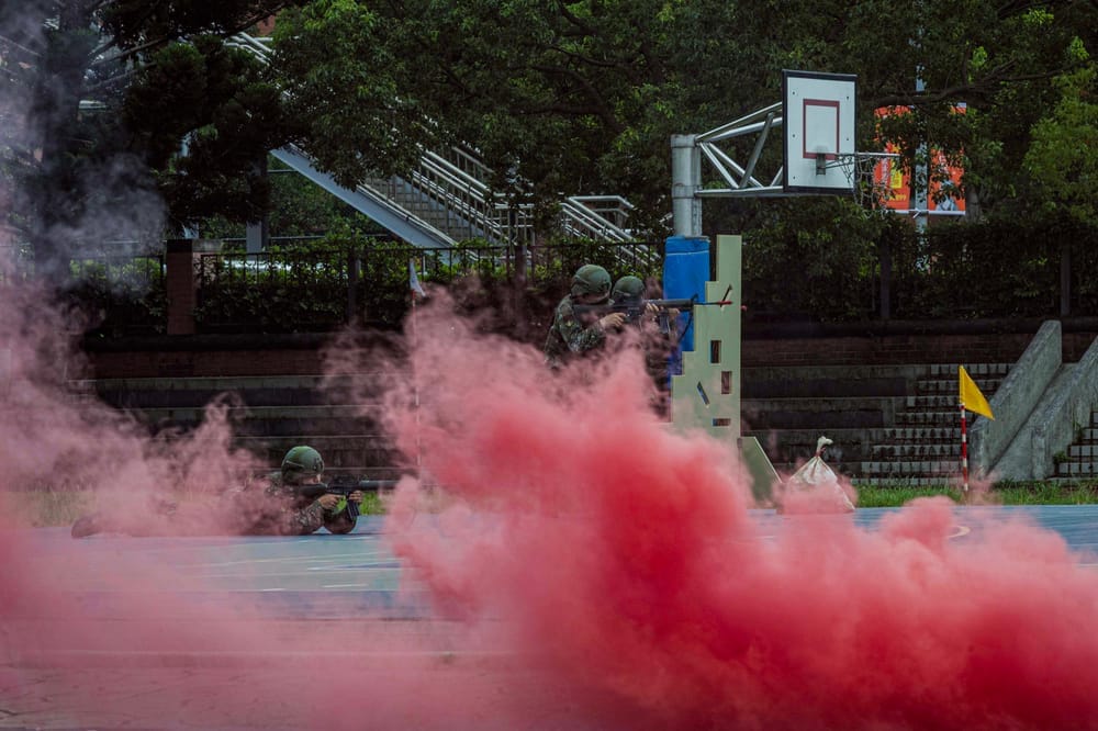 2025 年「漢光 41 號演習」實兵操演自 2025年7月8日起展開,歷時十天九夜,過往多為5天4夜,並實施無劇本、不間斷的連續演練,是史上最長的漢光演習。演習依戰備階段進行常態危機處理、反登陸作戰、濱海攔擊、縱深防禦與持久作戰等課目。演習地點涵蓋台灣各地,內容包括橋樑守備、戰傷救護、資訊防護與民眾疏散等等,並分別舉行「城鎮韌性演習」,模擬戰時,城市如何維持基本運作、進行疏散與協調,測試軍民聯合作戰與應變機制。攝:陳焯煇/端傳媒