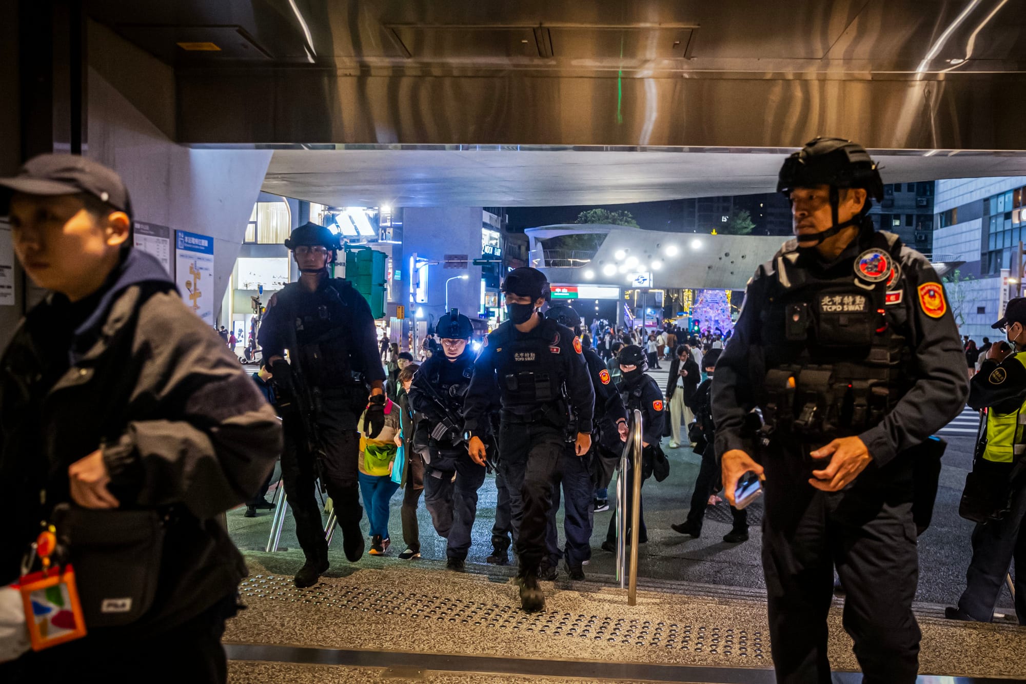 2025年12月19日,台北市發生無差別傷人事件。27 歲兇嫌張文在台北捷運台北車站投擲煙霧彈並持刀攻擊路人,隨後移至捷運中山站及誠品南西商圈傷人,事件造成4死9人受傷。聖誕節前後,不少市民帶同鮮花前往捷運台北車站及中山誠品的案發現場,悼念因無差別傷人事件中身亡的三名無辜民眾,包括於台北車站試圖制止嫌犯的余家昶先生。2025年12月26日,臺北捷運公司與臺北市政府等有關單位,舉行大規模高強度模擬演練。攝:陳焯煇/端傳媒