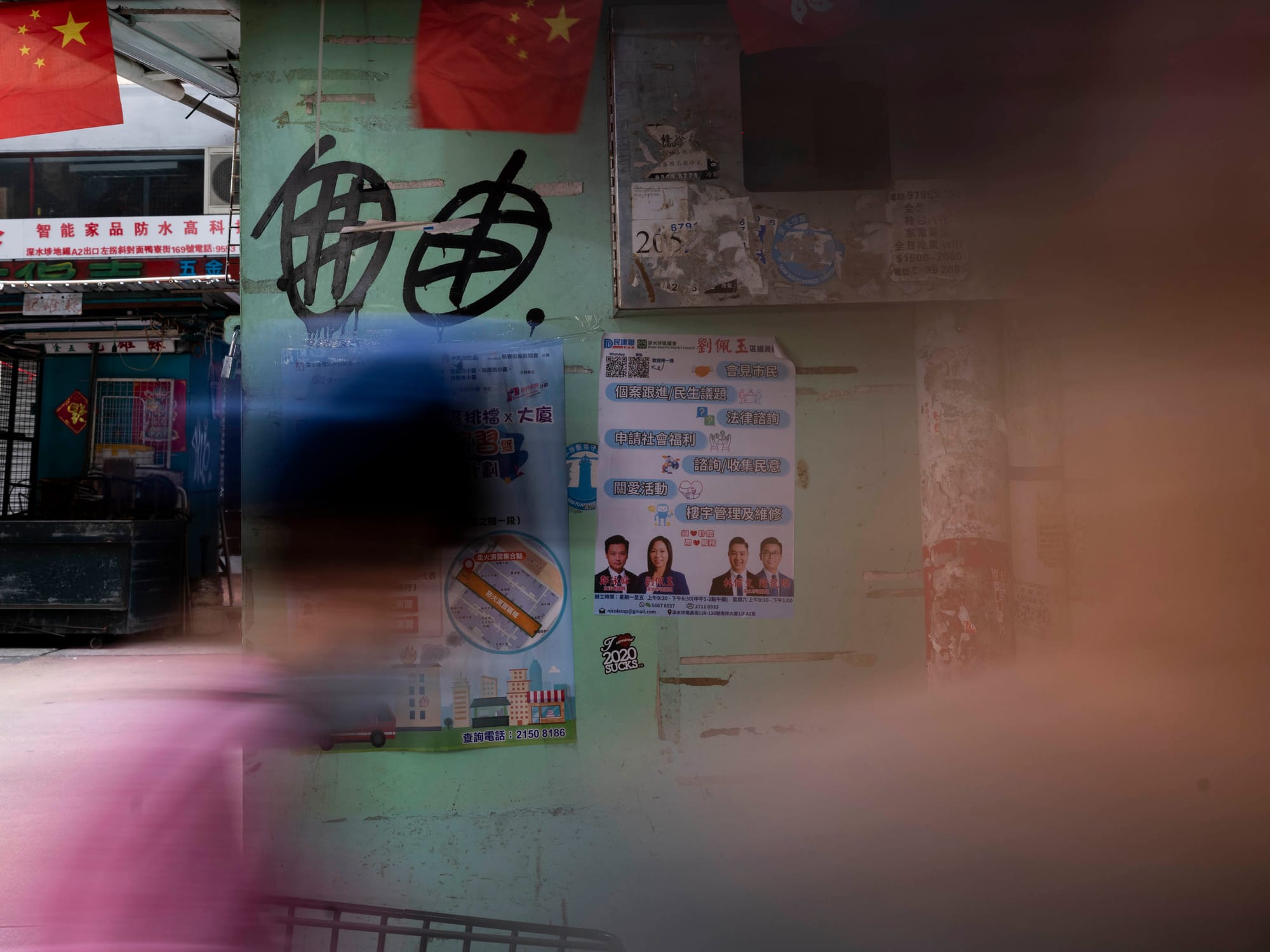 香港街頭上的「金錢自由」塗鴉。攝:林振東/端傳媒