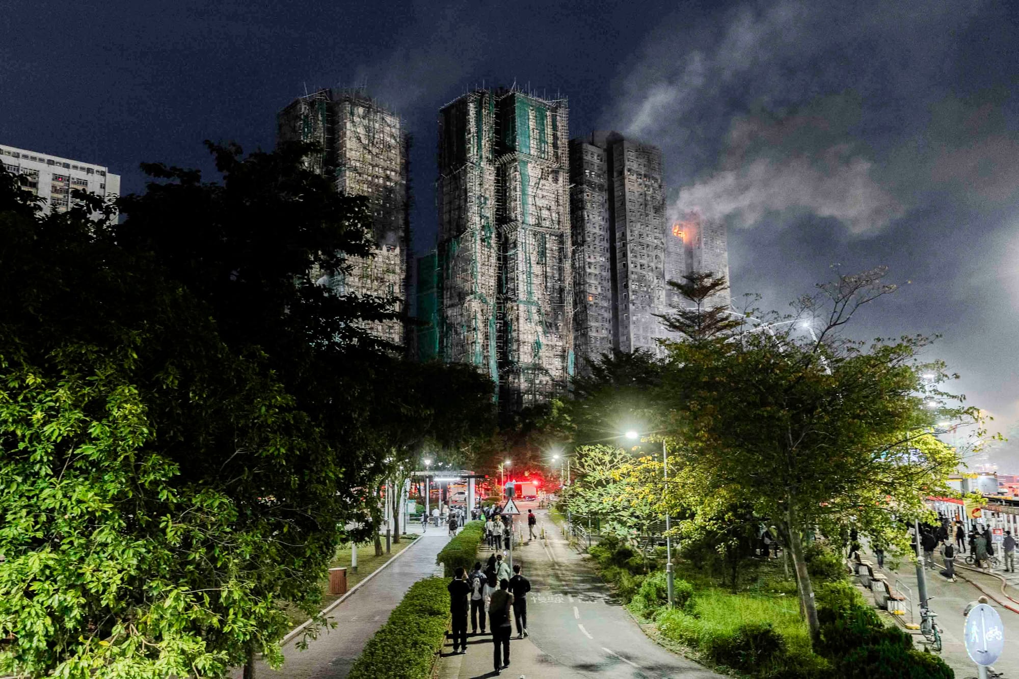 2025年11月26日,香港大埔宏福苑發生五級火災,火災發生前宏福苑正在進行維修工程,調查顯示工程中封閉窗戶所用的保麗龍屬高度易燃物,加上使用未達阻燃測試標準的保護網,使火勢迅速蔓延,事件造成161人死亡、79人受傷。攝:鄧家烜、林振東/端傳媒