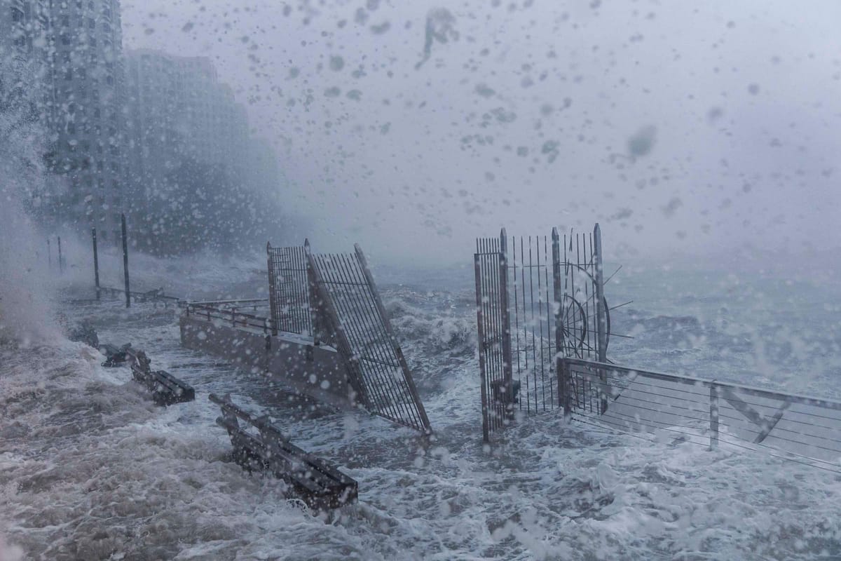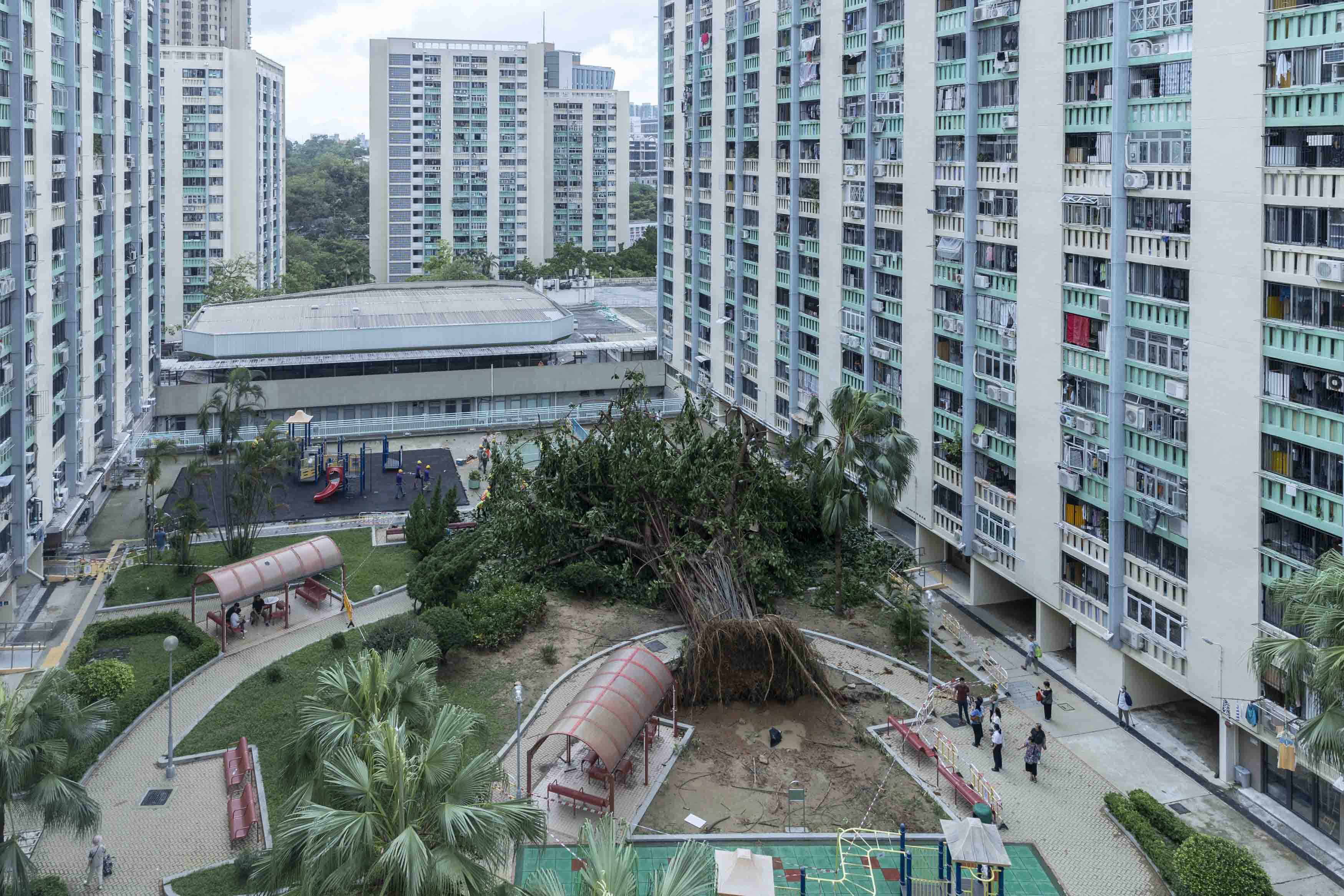 超強颱風樺加沙襲港,十號颶風信號維時10小時40分。今次是逾半世紀以來,香港首次同年掛兩次十號風球。樺加沙吹襲香港的期間,各處水浸黑點,杏花邨海水倒灌,巨浪不斷拍打岸邊,鯉魚門的部份低窪地區水浸,何文田愛民邨的一棵老榕樹被吹至連根拔起。攝:鄧家烜、林振東/端傳媒