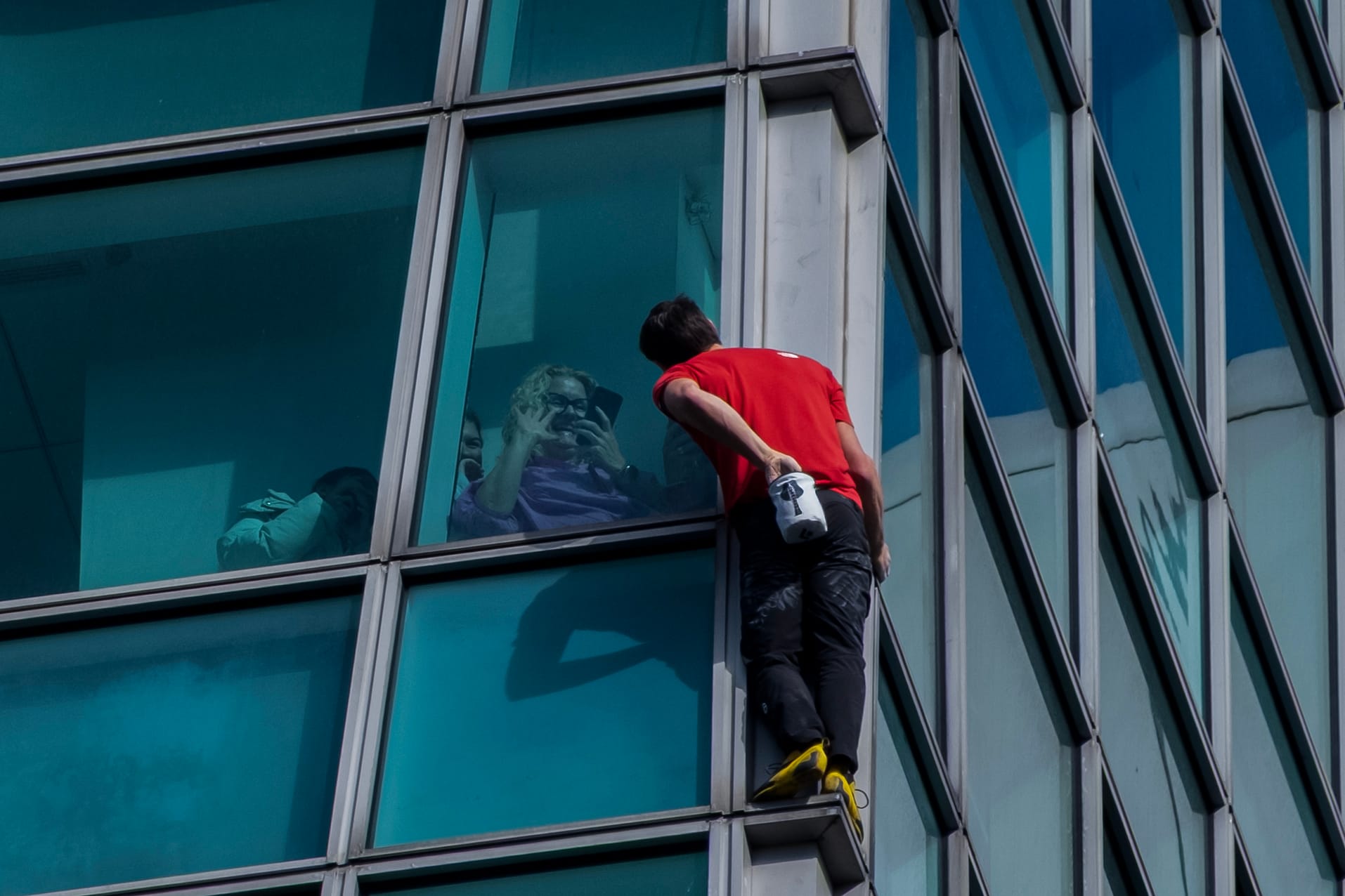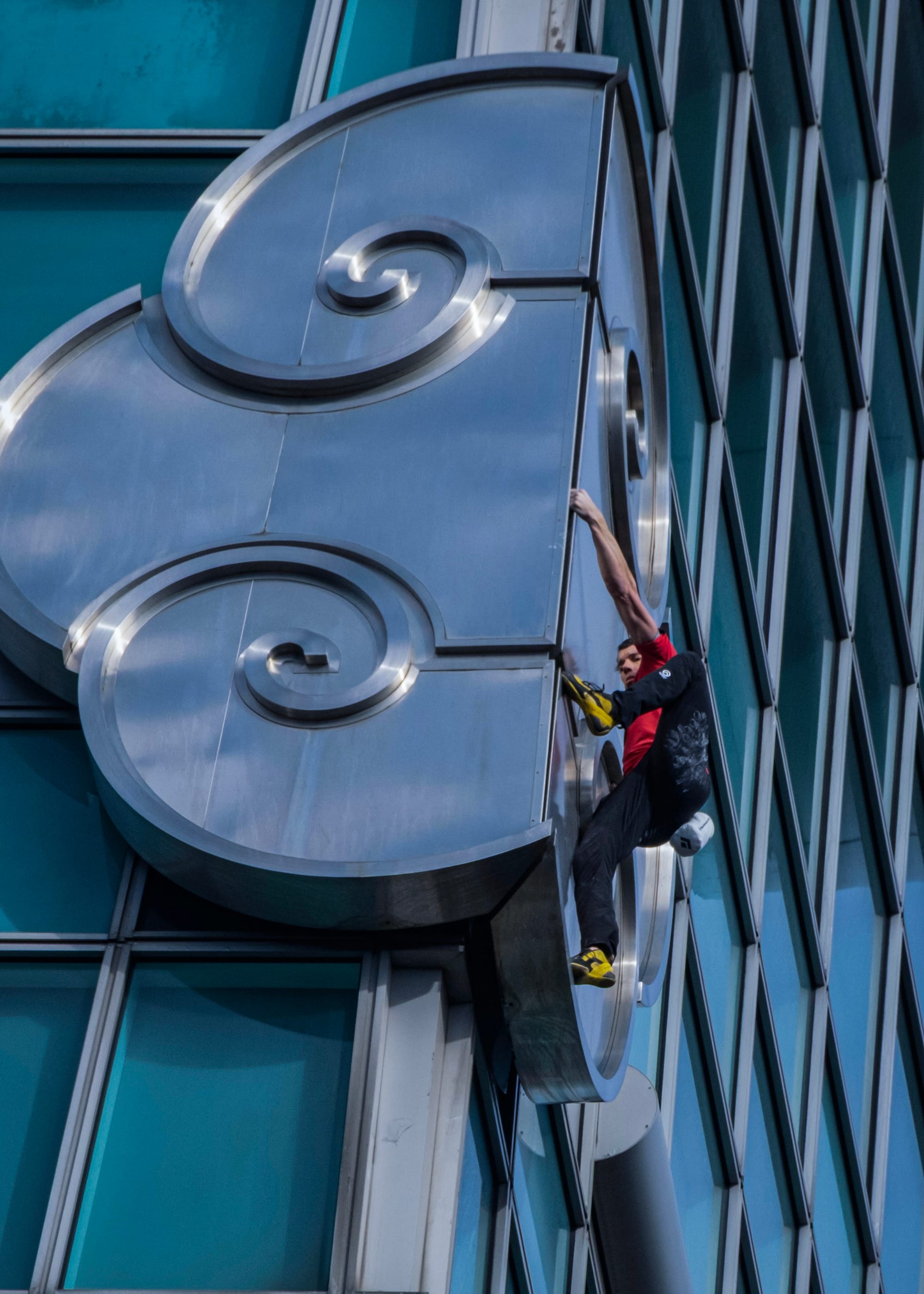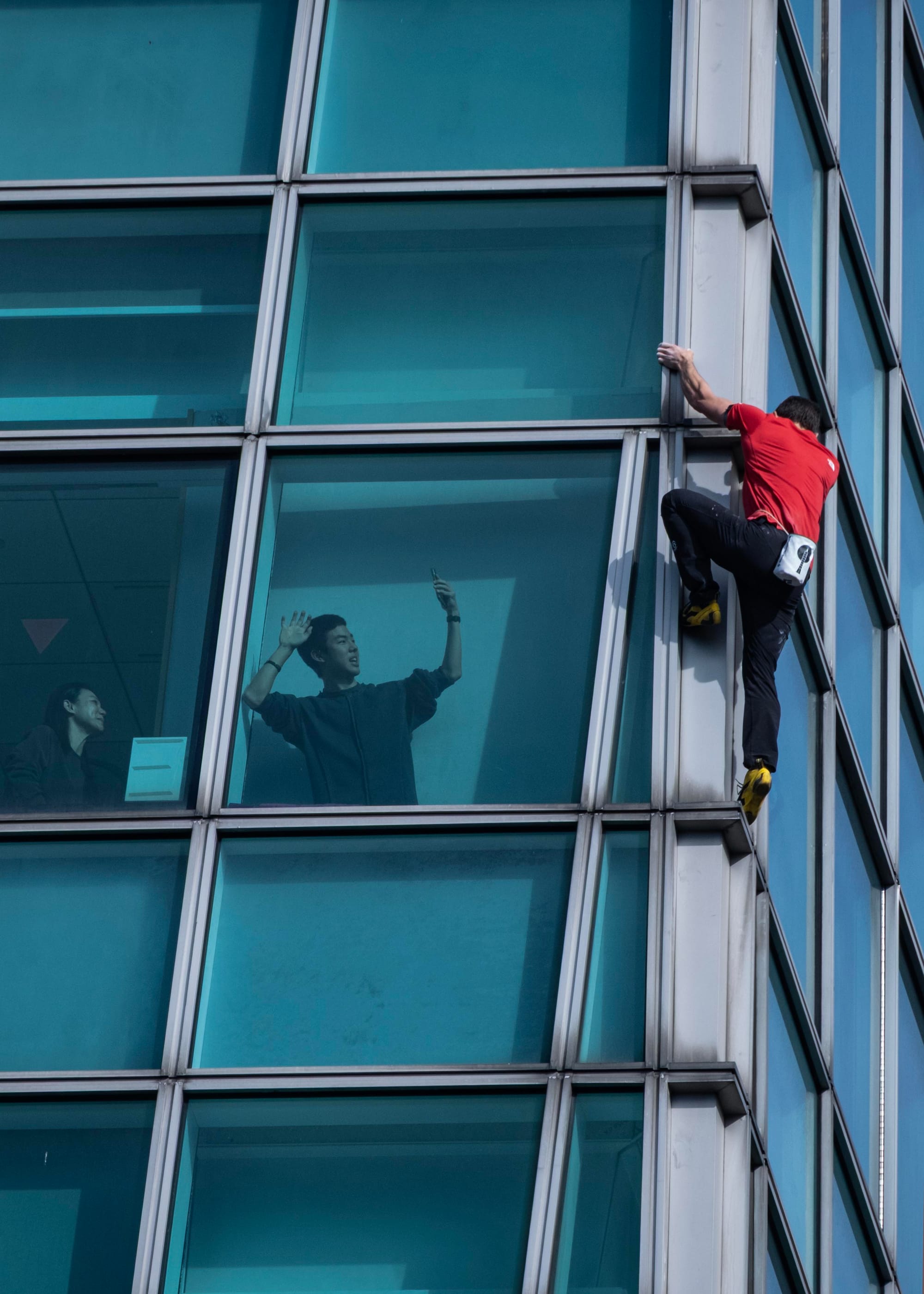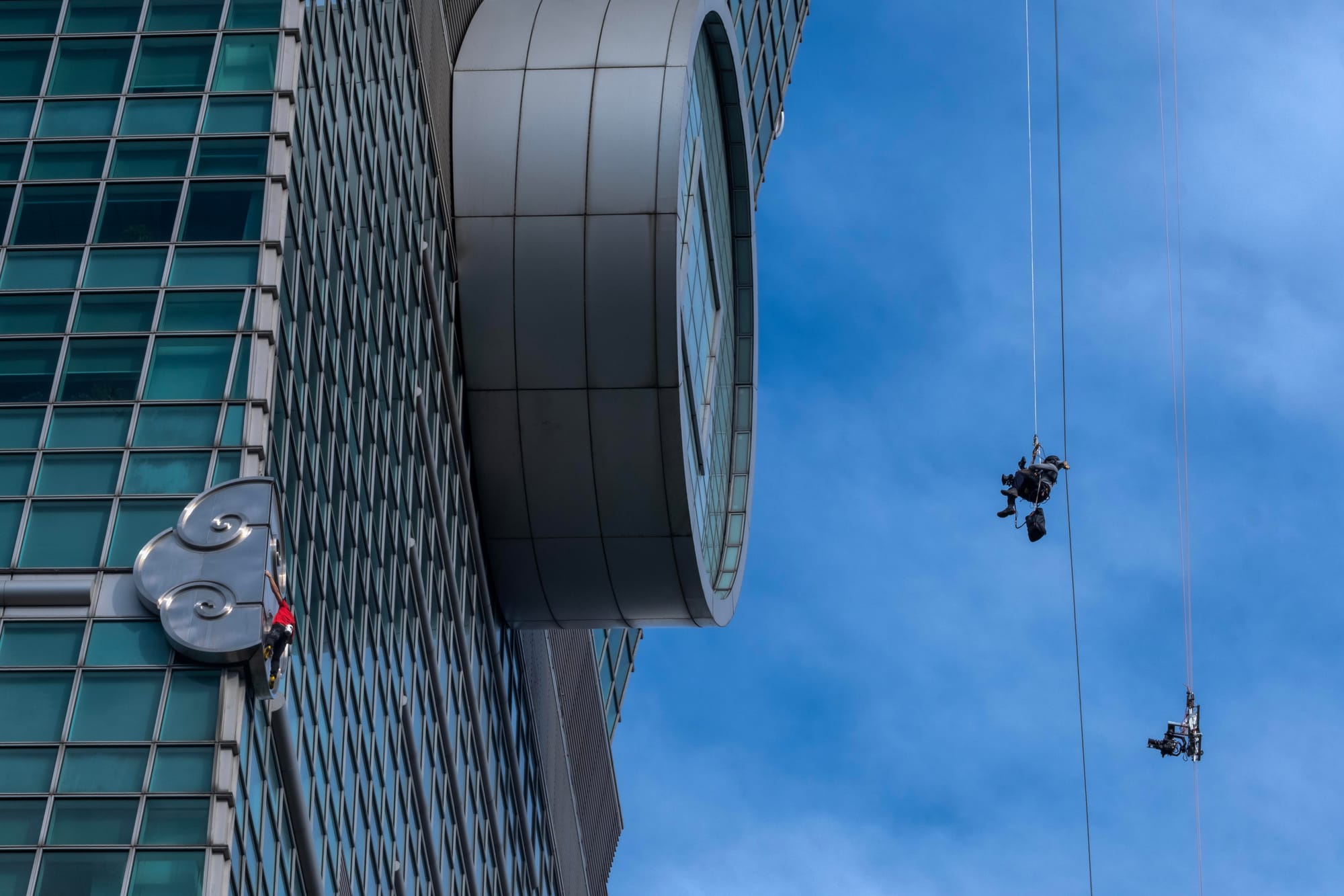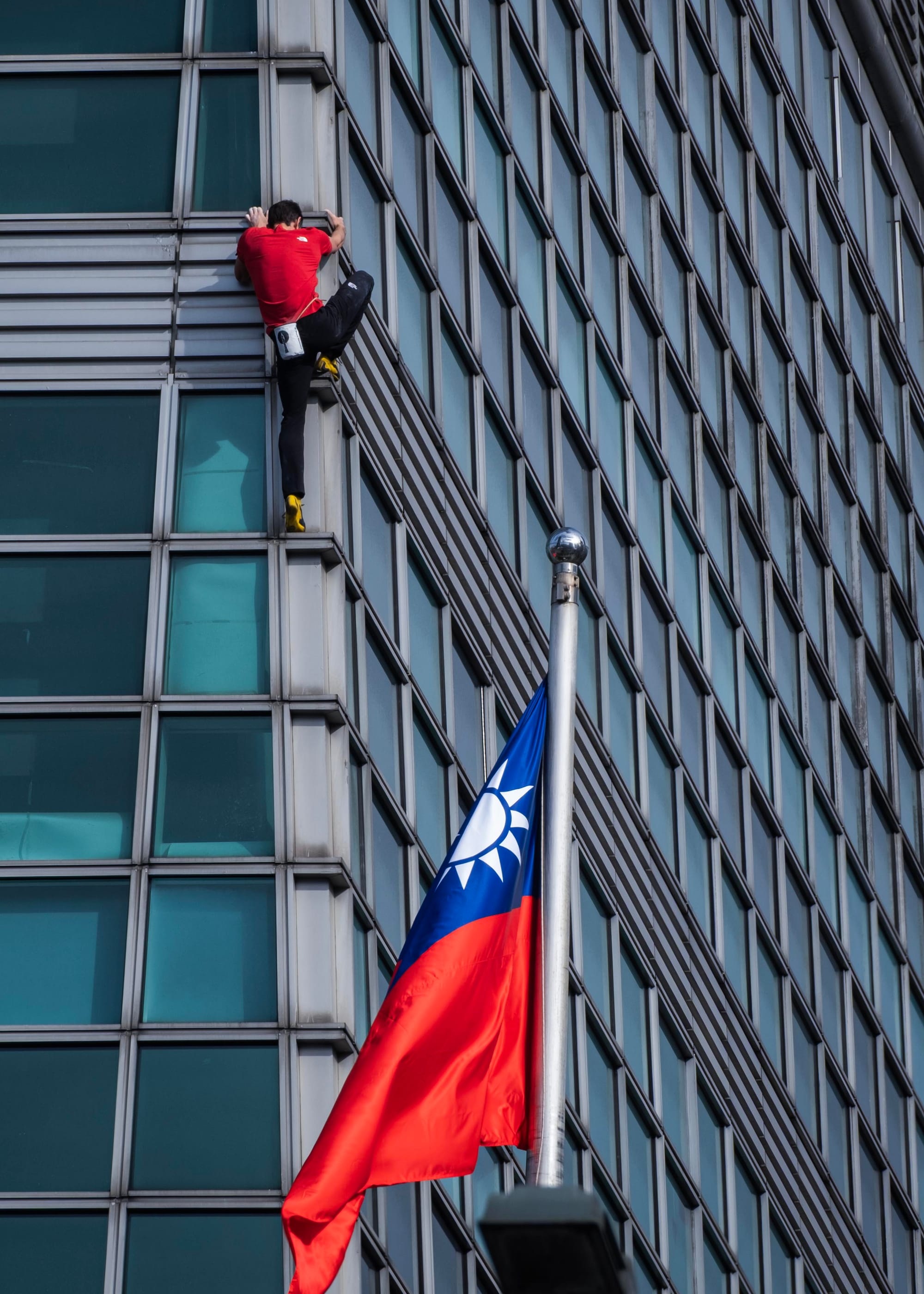 2026年1月25日,美國攀岩家 Alex Honnold 徒手攀爬台灣地標「台北101」。攝:陳焯煇/端傳媒