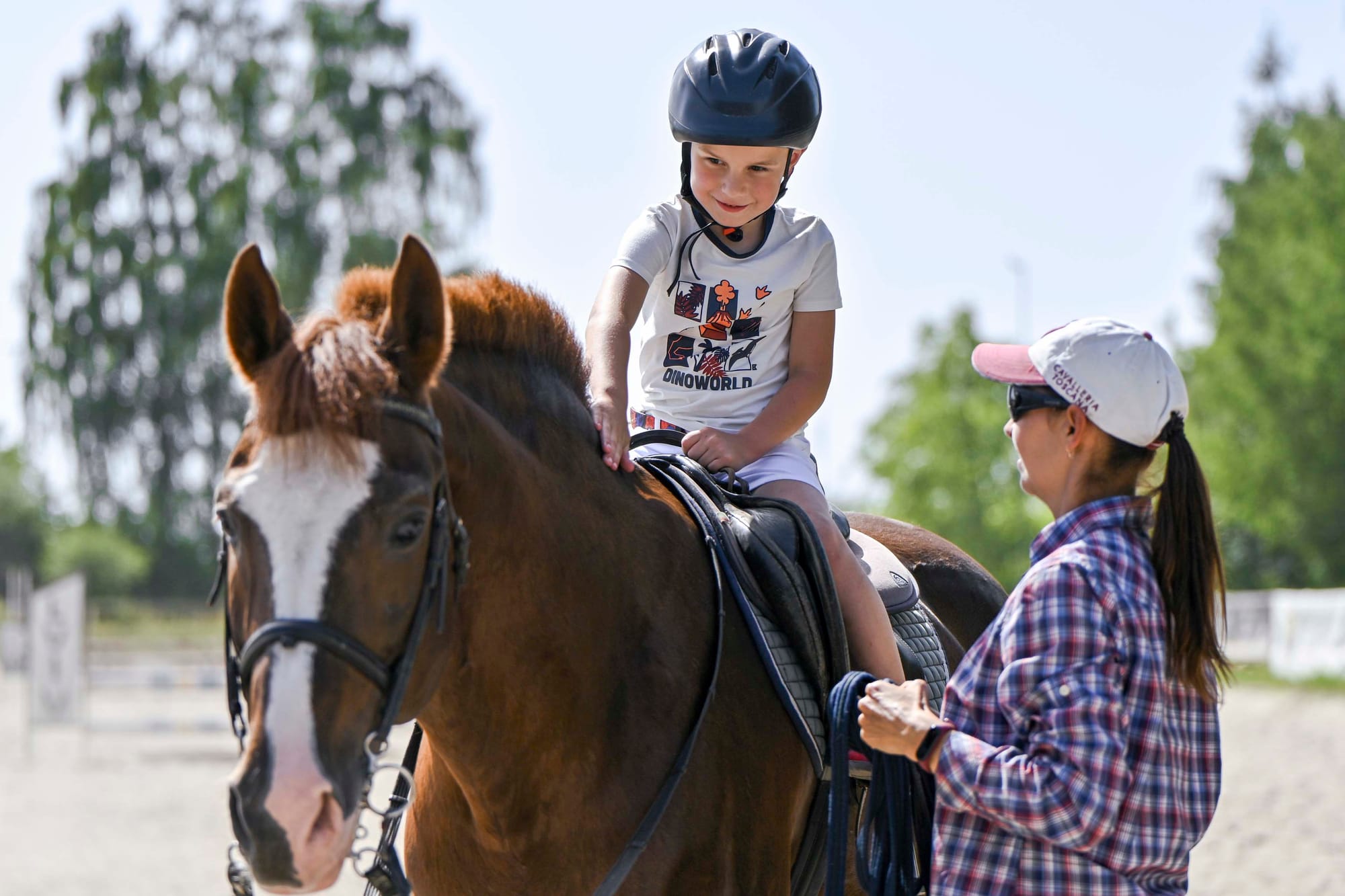 2026年2月,台湾北部桃园市的希望马场(Therapeutic Riding Center of Taiwan),许多患有脑瘫、自闭症、多动症和其他疾病的儿童,透过骑马、与马互动,获得陪伴和治疗。经过训练的马匹温和、冷静,人们骑马、牵马、喂食、梳理毛发,或只是静静拥抱马匹,聆听牠们的心跳,都能使获得放松、宁静和治愈。