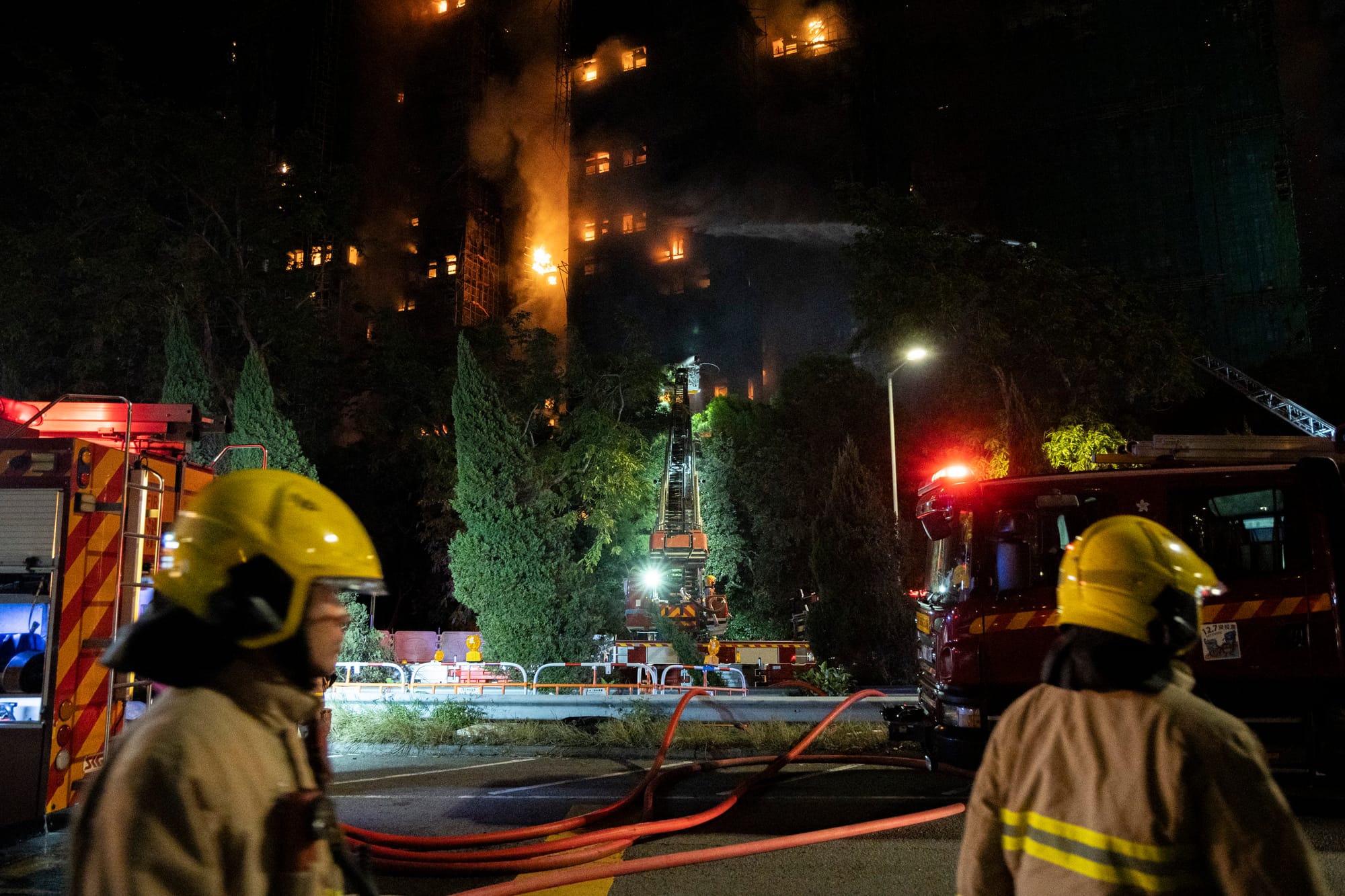 隶属沙田消防局的37岁消防员何伟豪是首批抵达灾场的消防员。他于11月26日下午2时51分被派往宏福苑,与两名同事被派往宏昌阁2701室营救。据宏泰阁升降机的闭头电视影像显示,11月26日下午3时15分,何伟豪右手持铁槌、头戴沙田“ST”字眼头盔,在宏泰阁25楼离开升降机,相信是经楼梯前往27楼。这是何伟豪被拍摄到的最后身影。
