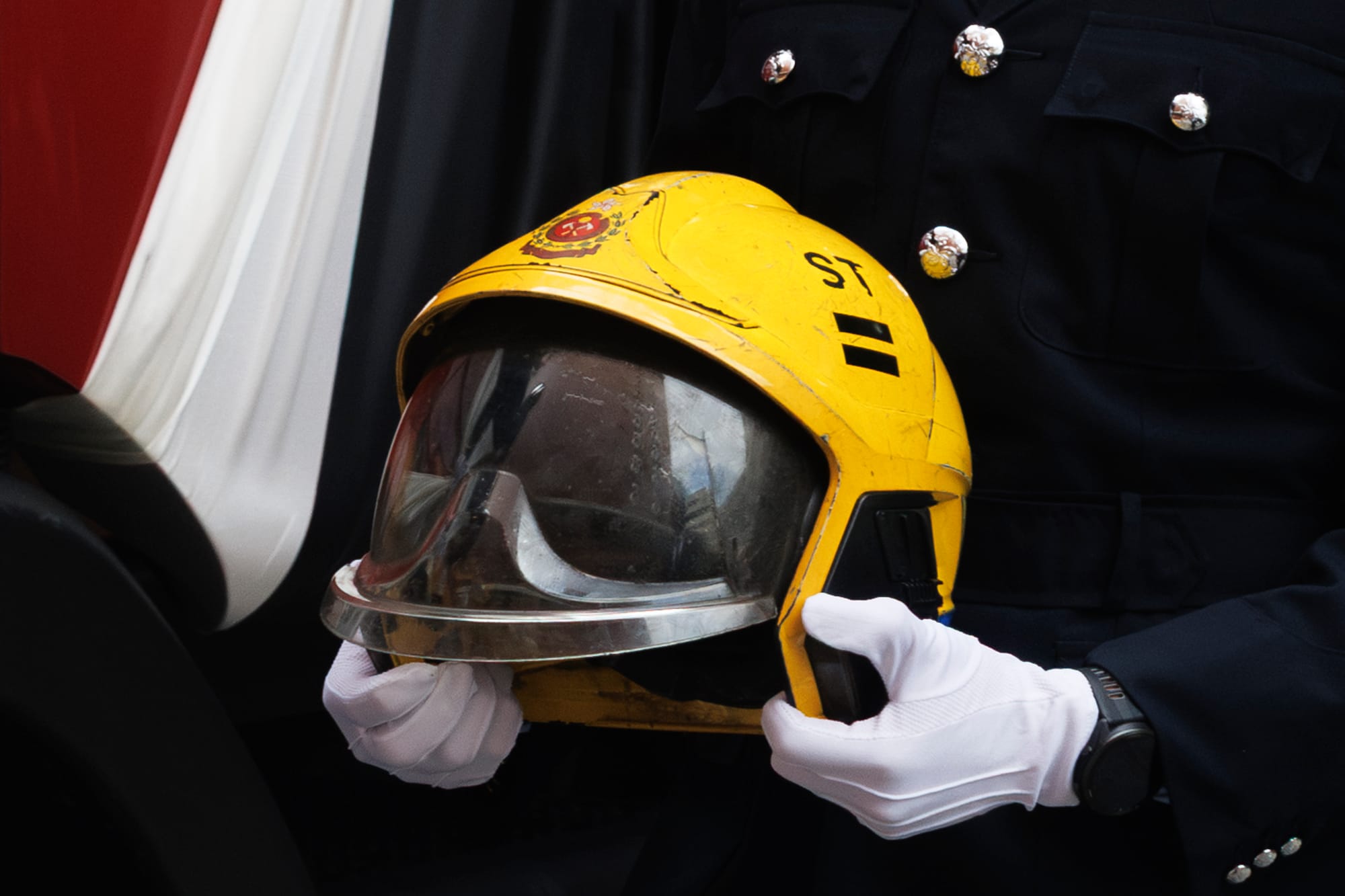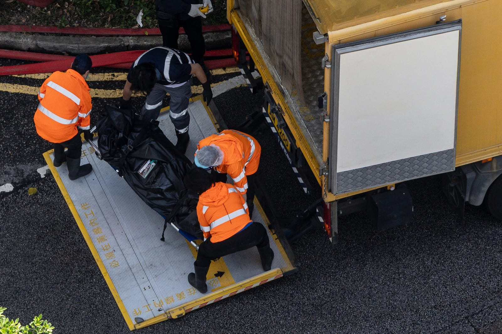 同日3点55分,何被发现在宏泰阁大堂外空旷地方,送院后至4点41分证实死亡。杜指出,何被发现时头戴头盔,左手手套、呼吸器、面罩在宏泰阁31楼升降机大堂被发现,手套在室外一截断的棚架发现;消防靴在宏泰其他位置发现,已被烧烂。