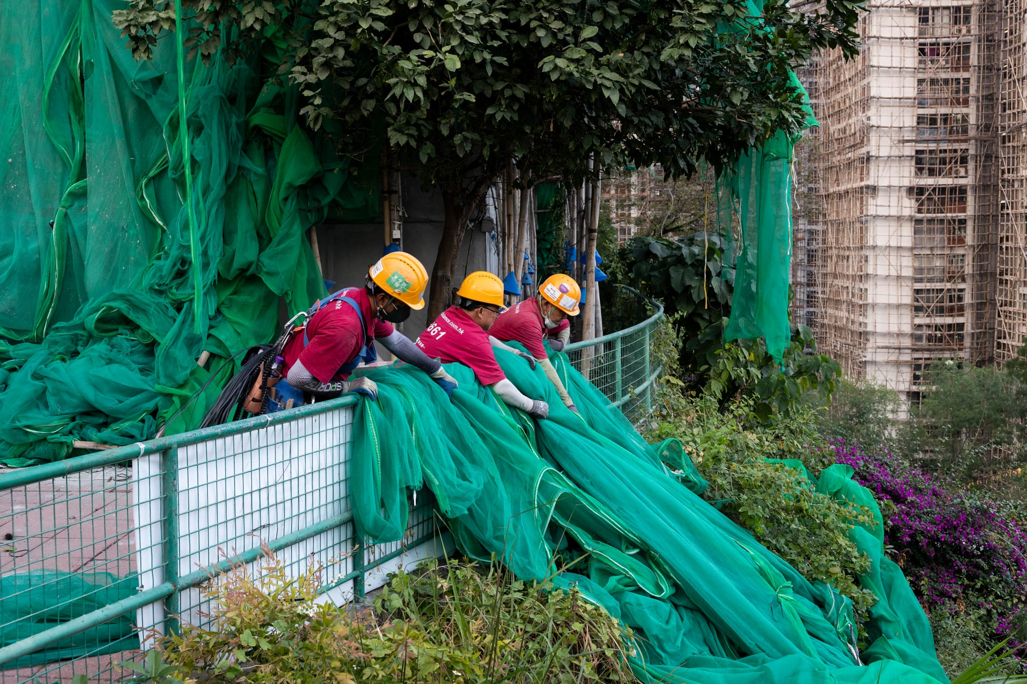 杜稱盈利豐負責人陳耀輝指出,2025年7月打完第一場風後棚網受損嚴重,宏業董事Gordon(何建業)要求他協助修補棚網。他先把庫存阻燃網運至宏福苑,但不夠修補損毀。宏業代表則指工程預計於2025年12月第一期已完工,中間只有5個月的時間,用普通圍網便可以。