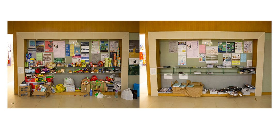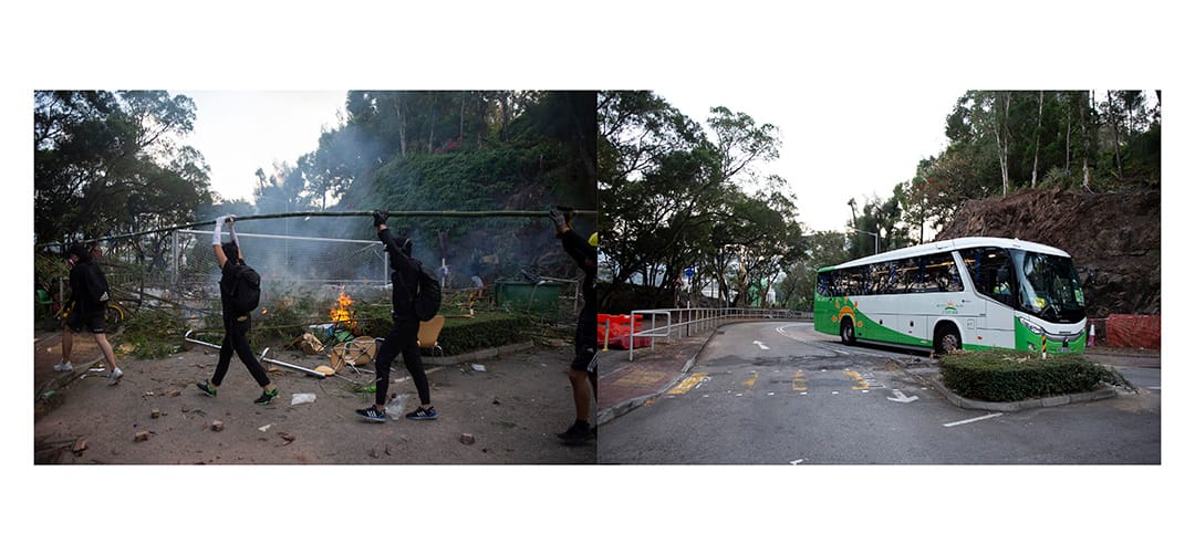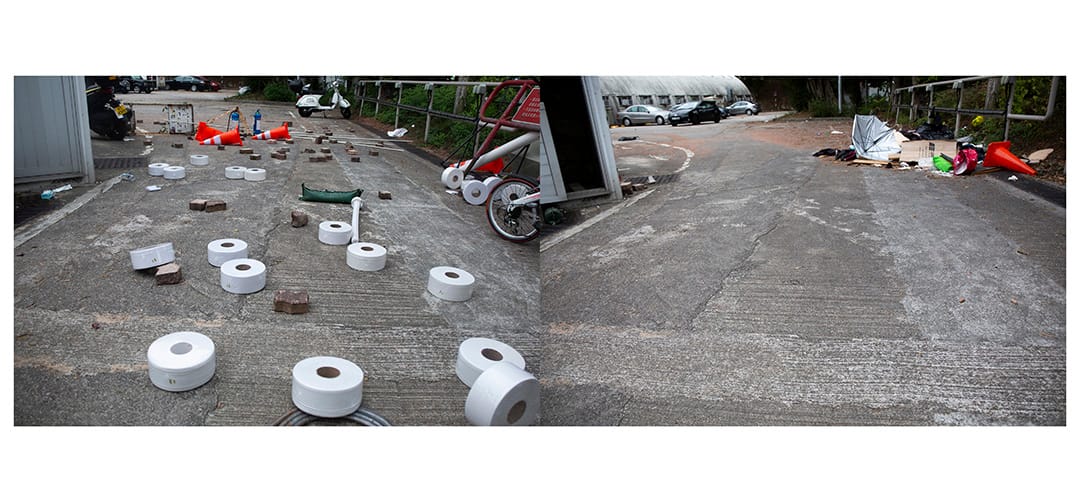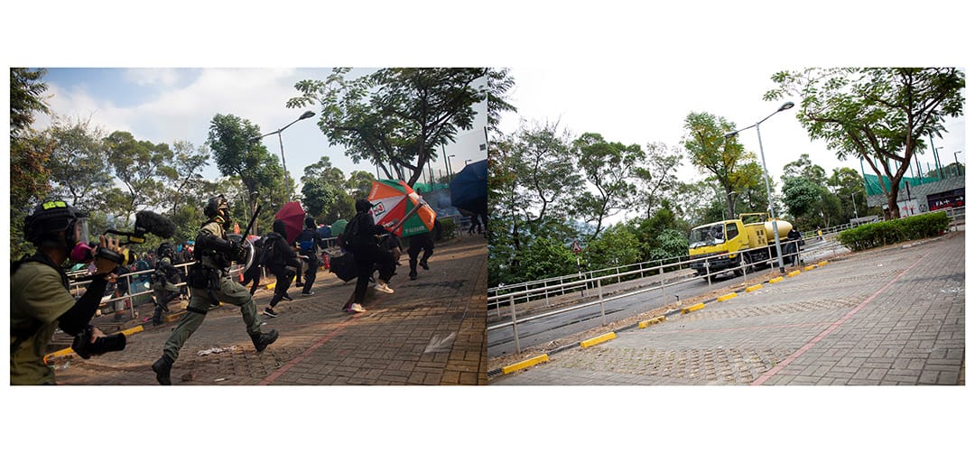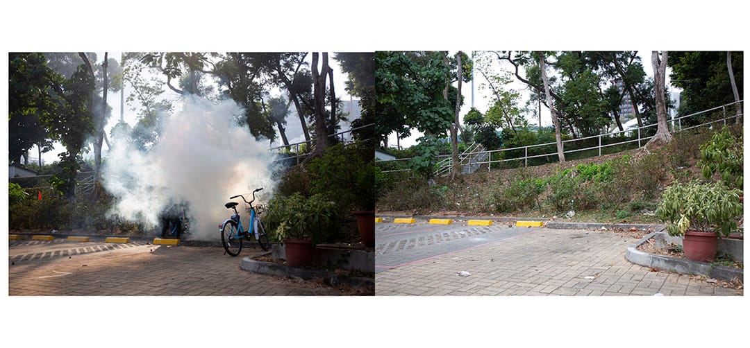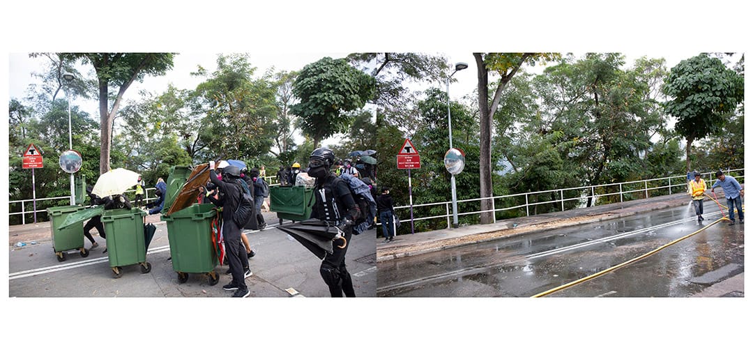 這輯對比圖是筆者一個月後重返中大所拍攝的。有些已經復原,有些痕跡仍在,校園總有一天始終會復原,但有發生過的,便不能被推翻,歷史始終會記住那年那夕。