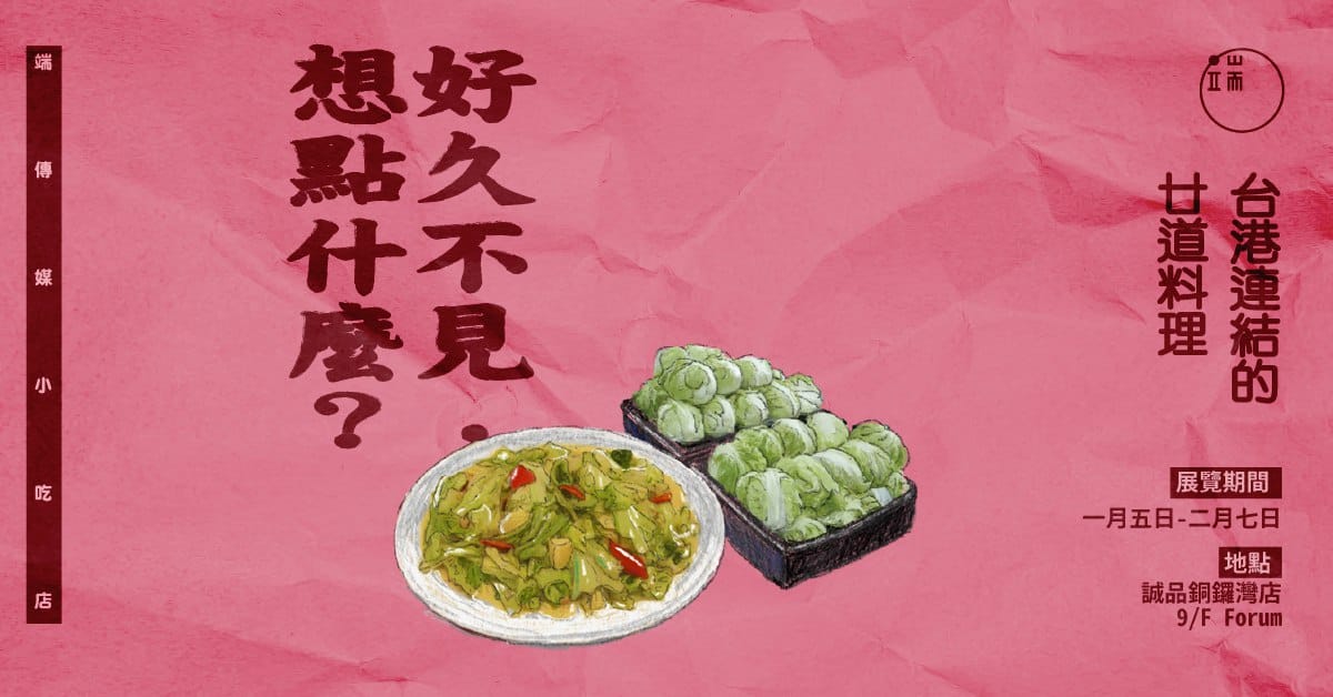 1月5日至2月7日,《好久不見,想點什麼?——台港連結的廿道料理》於香港誠品銅鑼灣店 9F 開展。展覽期間設有限定訂閲優惠,精選了20篇台港主題文章免費開放閲讀,歡迎你閲讀、分享,來一趟台港文化深度遊。