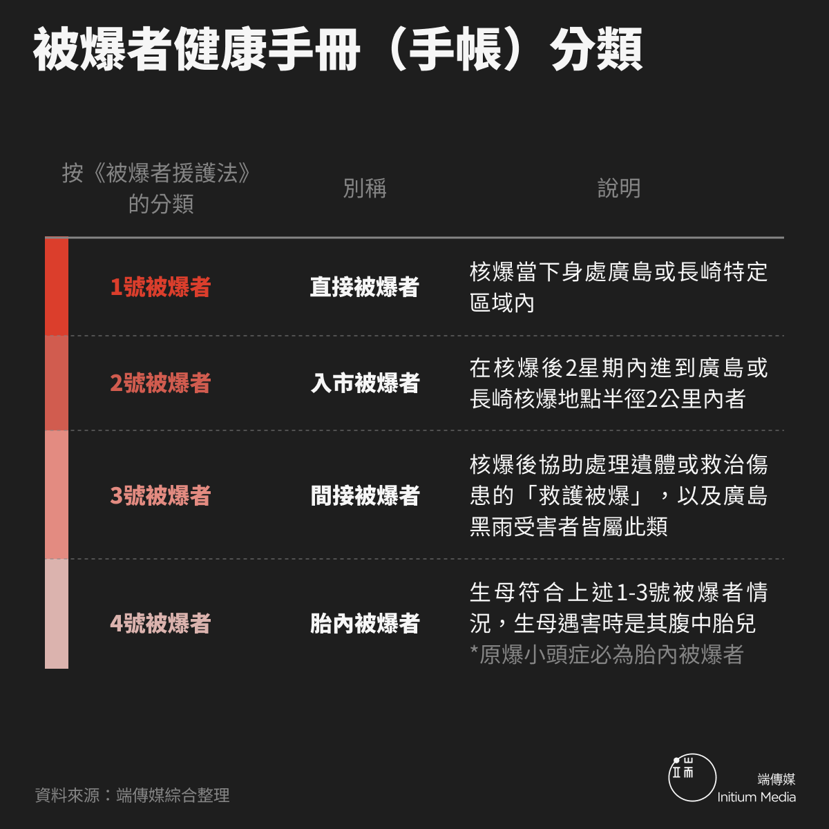 根據端傳媒調查所及範圍,2015年定居台灣且領有手帳的「被爆者」人數為22人,到了去年3月厚生勞動省掌握的資料則只剩11人。