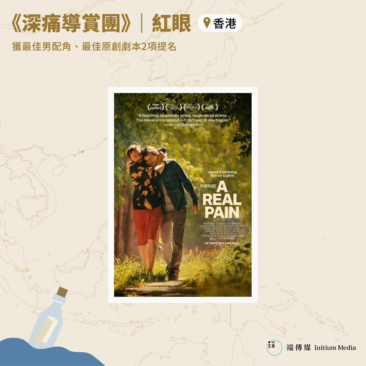 是以這一次,我們邀請9位駐場影評人,從9個城市,各自寄出一封漂流信件,分今明兩日刊出。每封信都講述一部提名電影,同時也生發更多的訴說,關於影像、思考與提問。這些在機場、飛機上、火車上、甚至城市髮廊裏寫下的信件,寄給「在世界某一處也在看電影的你」。