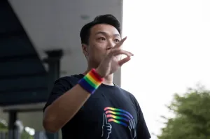 2025年9月10日,立法會二讀否決《同性伴侶關係登記條例草案》後,岑子杰見記者。攝:林振東/端傳媒