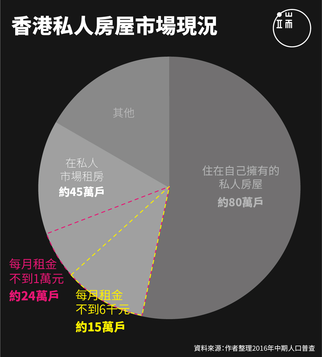 註一:以2016年「租住一個單位」及「私人居所」戶數總和推算。