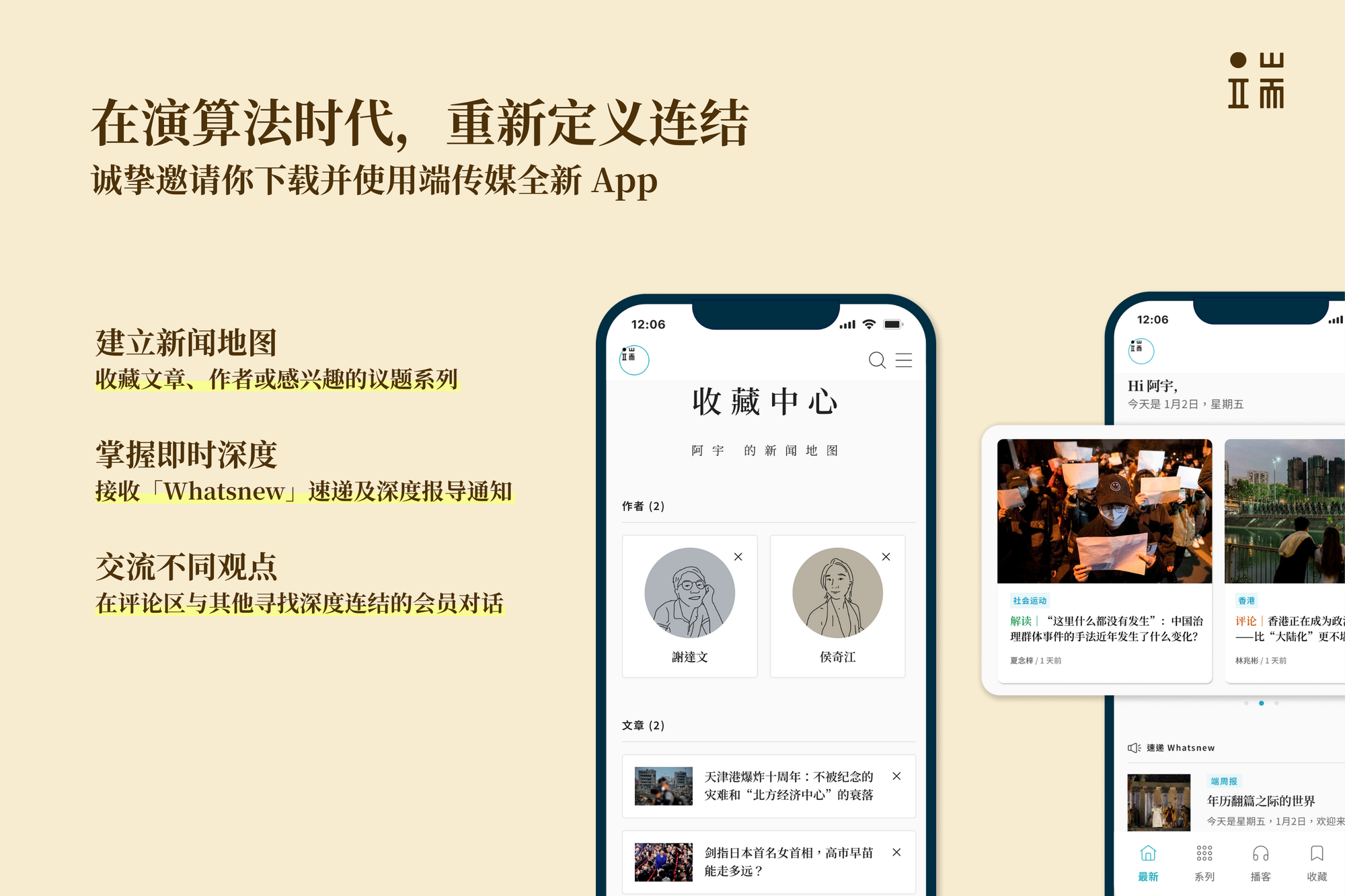 欢迎你立即使用端传媒 App,随时随地收藏和记录属于你的新闻地图,并在旅途上,与其他同样在世界中寻找深度连结的会员彼此交流。