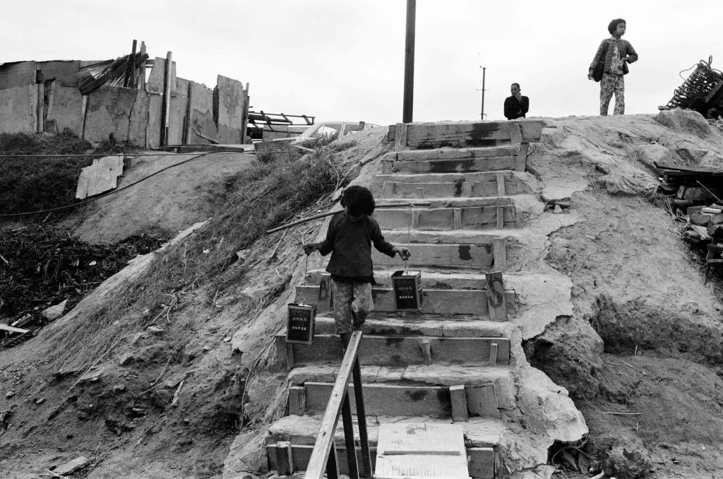 1968年1月,香港一名儿童每天前往河边取水。摄:Mirrorpix via Getty Images