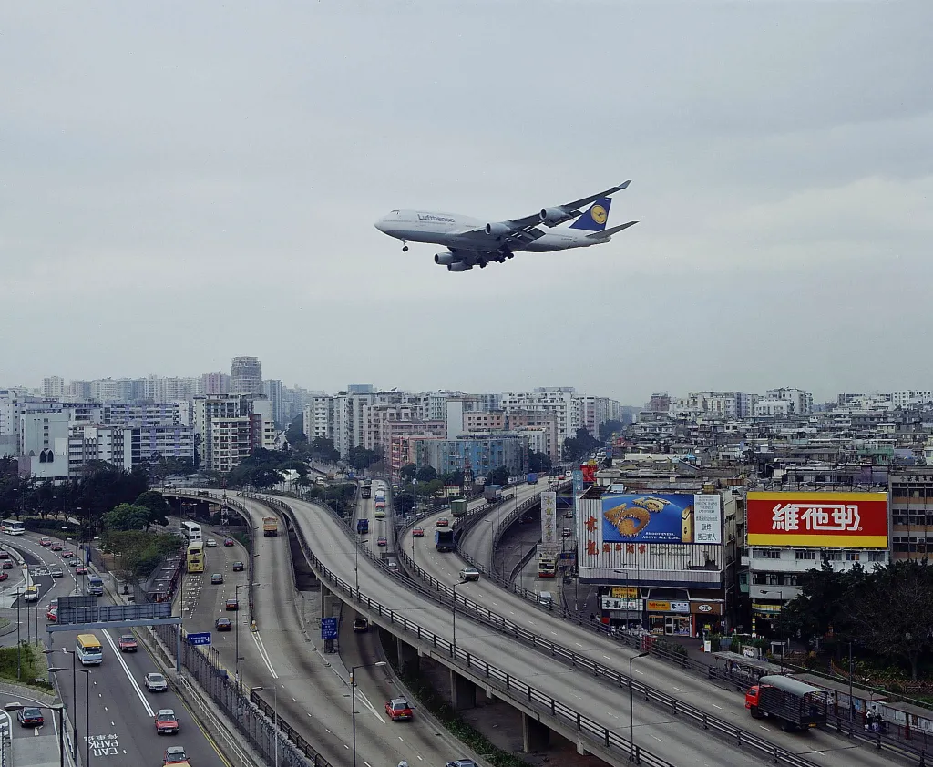 香港,一架波音飞机正在于启德机场降落。摄:Winter/ullstein bild via Getty Images