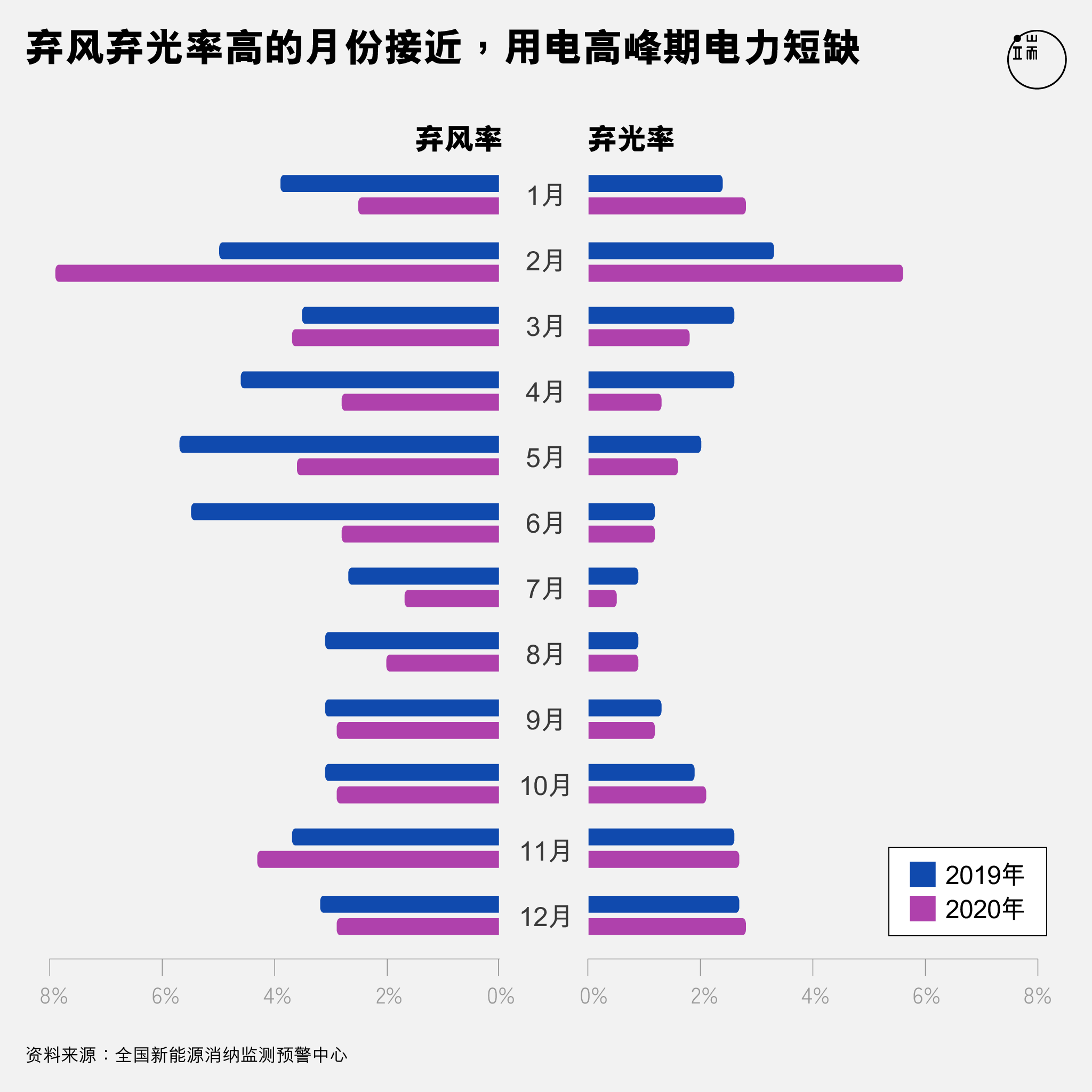 风能和太阳能都非常依赖气候情况,有较强的波动性和间歇性,因此往往出现整体电力富余,但用电高峰短缺的情况。山东、青海等光伏发电装机大省,不少地区出现中午电力充沛但用电高峰的傍晚却紧张的状况,导致火电机组中午停机、傍晚满负荷开动,利用率低,效益亏损,而与此同时,光伏和风电也因低峰时段过渡富足而弃置率高。