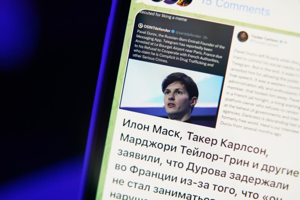 除官方人士借用此事攻擊西方無言論自由,不少俄羅斯反對派也對法國逮捕杜羅夫持否定態度。如俄羅斯反腐敗基金會的日丹諾夫(Ivan Zhdanov)認為,對杜羅夫的指控看起來很薄弱,這表明他的被捕是由於他拒絕與當局合作;2018年反對俄羅斯封鎖 Telegram集會的組織者之一的斯維托夫(Mikhail Svetov)表示,這件事證明普京的「審查制度、對隱私的破壞和監視為其他西方政治階層樹立了榜樣」。烏克蘭導演羅德尼揚斯基(Alexander Rodnyansky)對此評論道,杜羅夫的被捕是送給普京的一份禮物,他肯定會說:「你們西方所吹噓的言論自由在哪裏?」