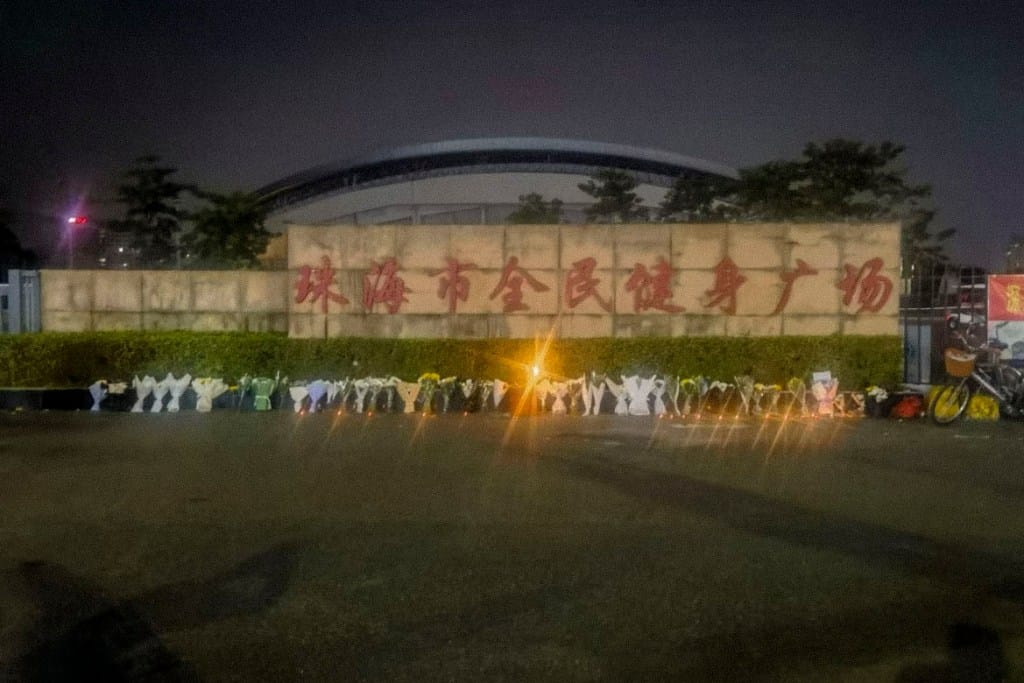网上信息显示,在11月12日晚,珠海体育中心外,已有市民摆放花束和蜡烛。
