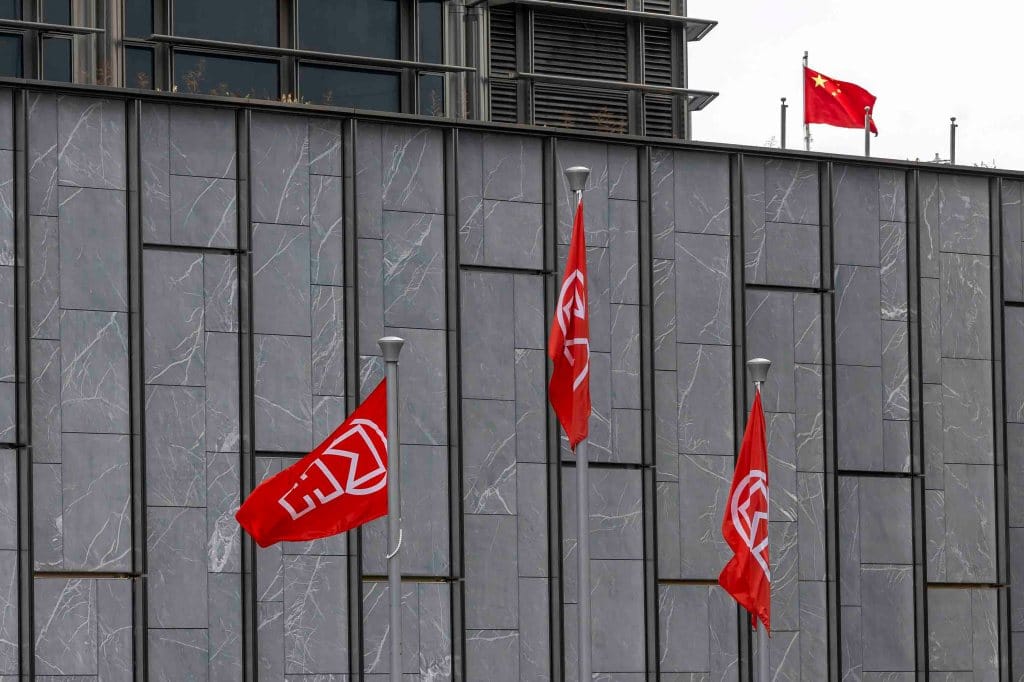 2024年11月20日,壹傳媒黎智英及《蘋果日報》3間公司涉串謀勾結外國勢力案,黎智英出庭作供。早上8時法院外升起國旗。攝:林振東/端傳媒