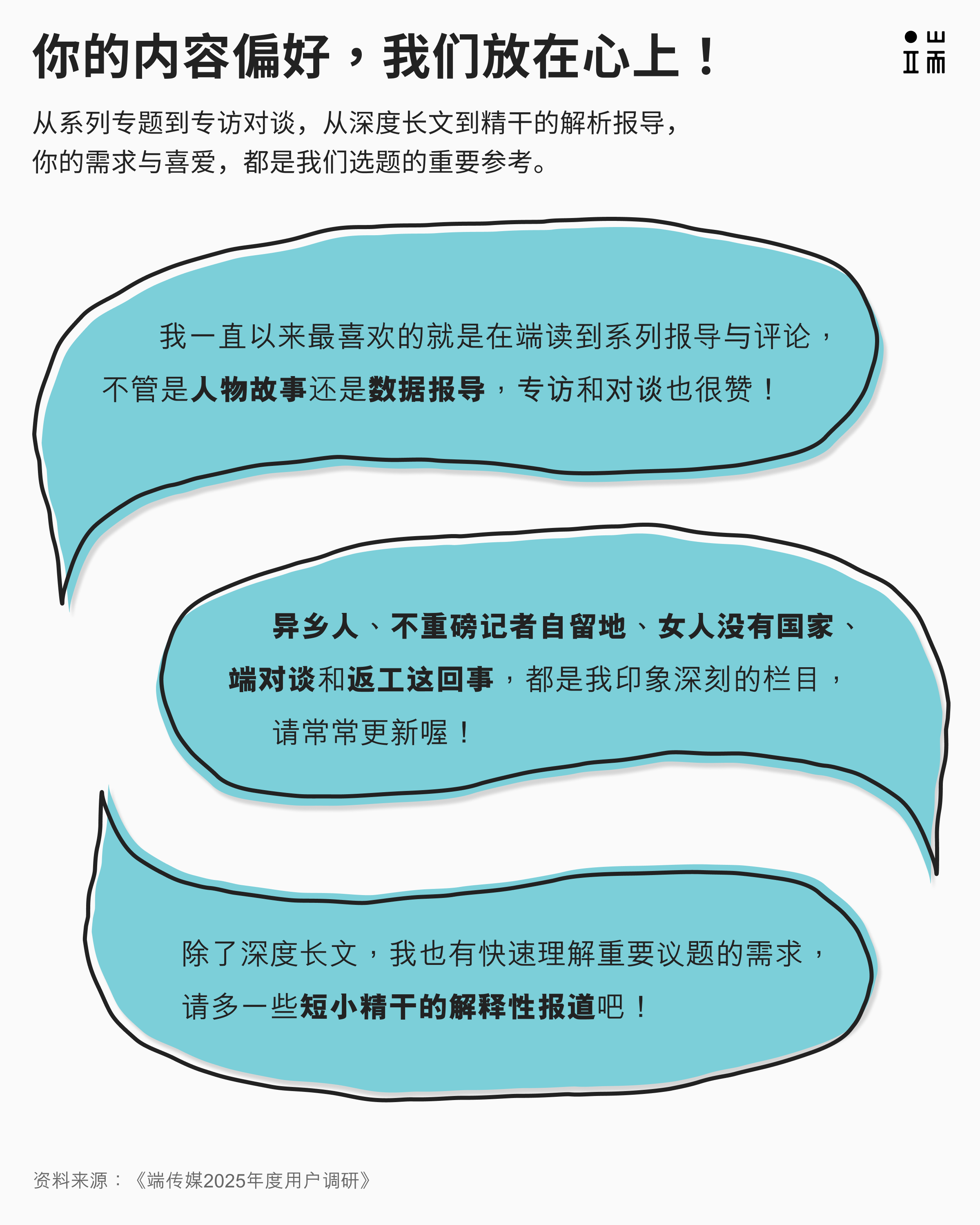 了解了你眼中的端之后,你也告诉了我们,你最爱看的内容、以及希望端能够提供更多的方向。这些回馈,都是编辑部最在意的提醒。
