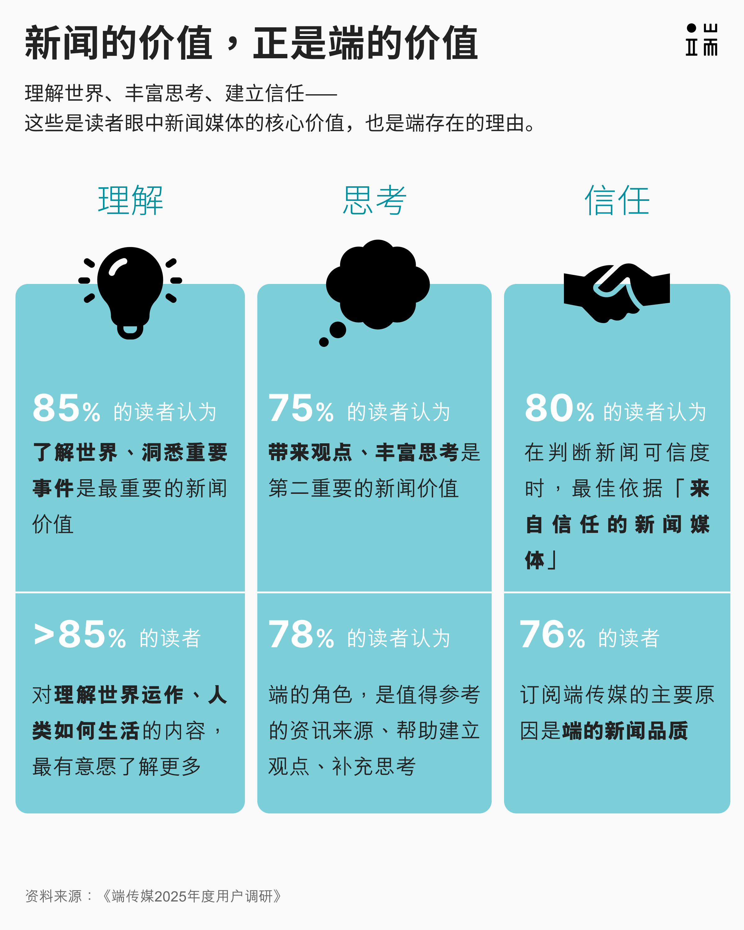 在另一个提问「端对你而言扮演一个怎样的角色」中,最多人选择的便包括「值得参考的知识和资讯来源,让我建立观点,补充思考」以及「帮助我理解世界、看懂新闻事件的脉络」。