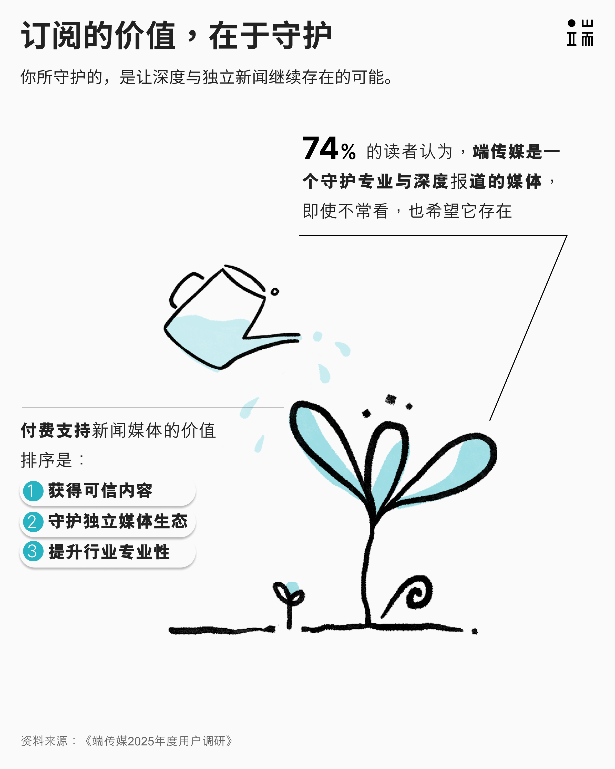这些年,读者常会问:订阅,除了打开付费墙后的深度内容,真的能守护专业报导吗?小端的回答始终是:可以的!每一份订阅,都是让编辑部得以专注报导、持续创作的直接支持。而令小端欣喜的是,调研的数据也印证了这一点。