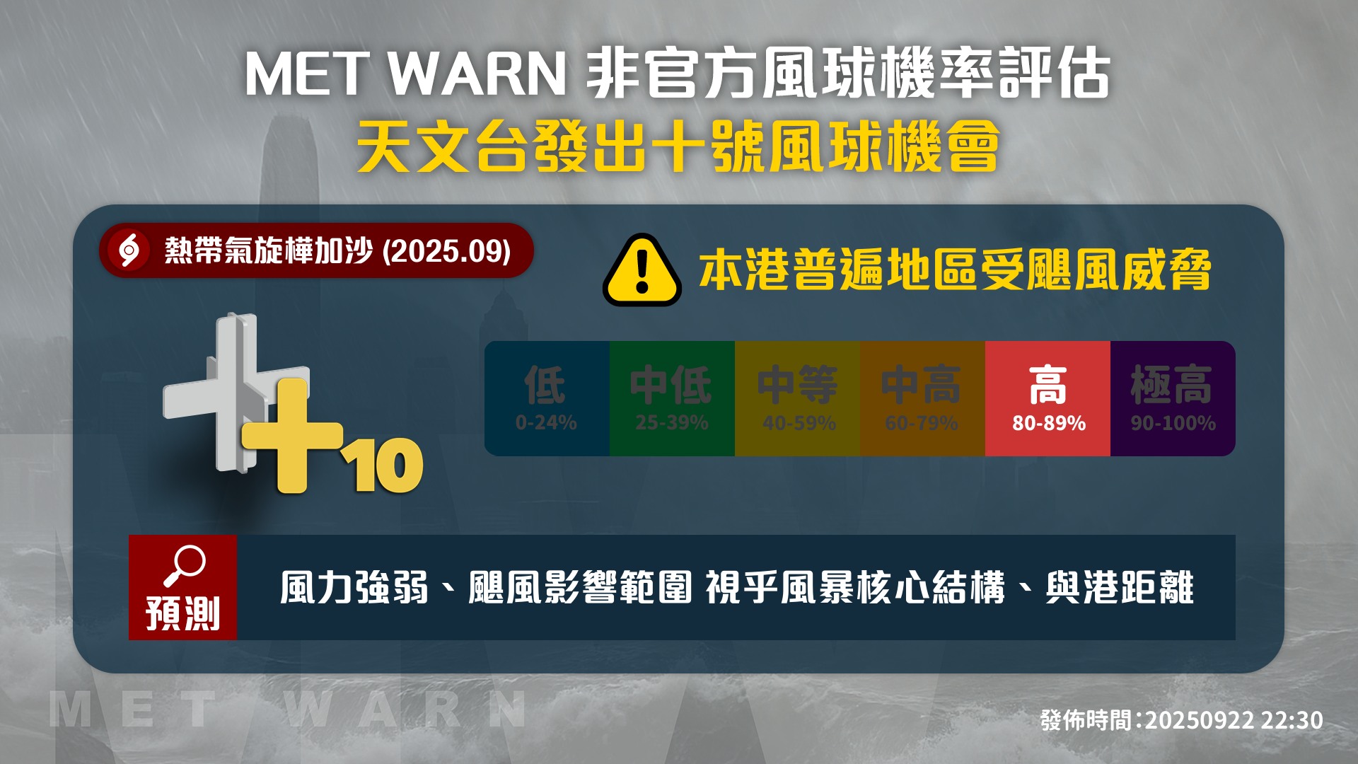 桦加沙袭港前一星期,MET WARN 已估计天文台有极高机会悬挂八号风球。天文台在9月22日改发三号风球,MET WARN 同日首次“越级”预测天文台有高机会悬挂十号风球。东岳说 Isaac 对做法曾有保留,成员讨论后一致赞同才发出预报。