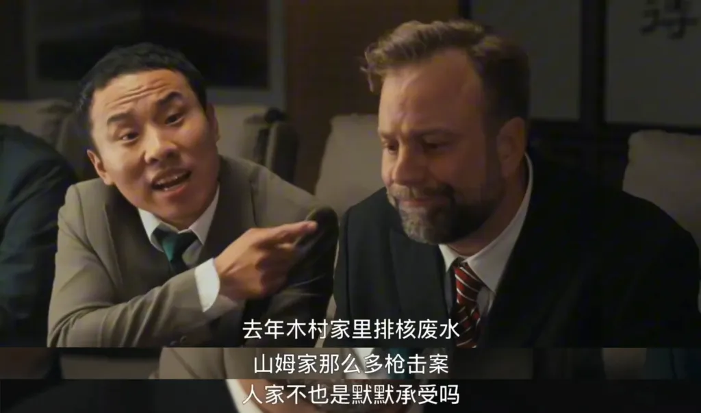 《金猪玉叶》的大反派设定为叶小莱律所的美国合伙人和他的日本情人,他们为了敛财遥控内地的下线利用“杀猪盘”骗取女孩钱财。对此,有脑洞大开的网友甚至分析出这里是有所谓的隐喻的,仿佛暗示着台湾当下的某种政治处境,毕竟为了讽刺这对反派,台词不但提及了日本核废料排污、美国校园枪击案等社会问题,连“小男孩”和“胖子”这两颗二战时期美军投向日本的原子弹都被用在所谓的“笑料”里……