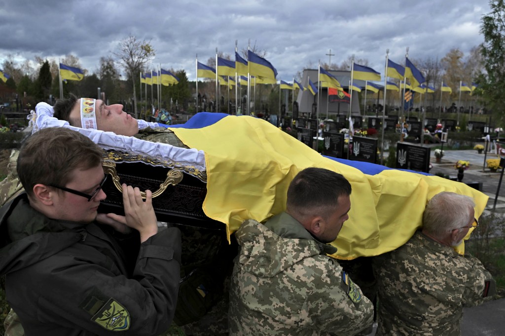 2023年11月6日,乌克兰布查公墓,乌克兰士兵正在为已故的33岁同伴举行葬礼。摄:Genya Savilov/AFP via Getty Images