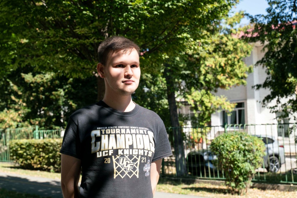 二十三岁的叶夫多基缅科(Vadym Yevdokymenko),为协助辨识死者身分的志工。他的父亲是最早一批在布查被俄军虐待杀害的男性,直到去年他才拿到父亲的死亡证明书。摄影:陈映妤