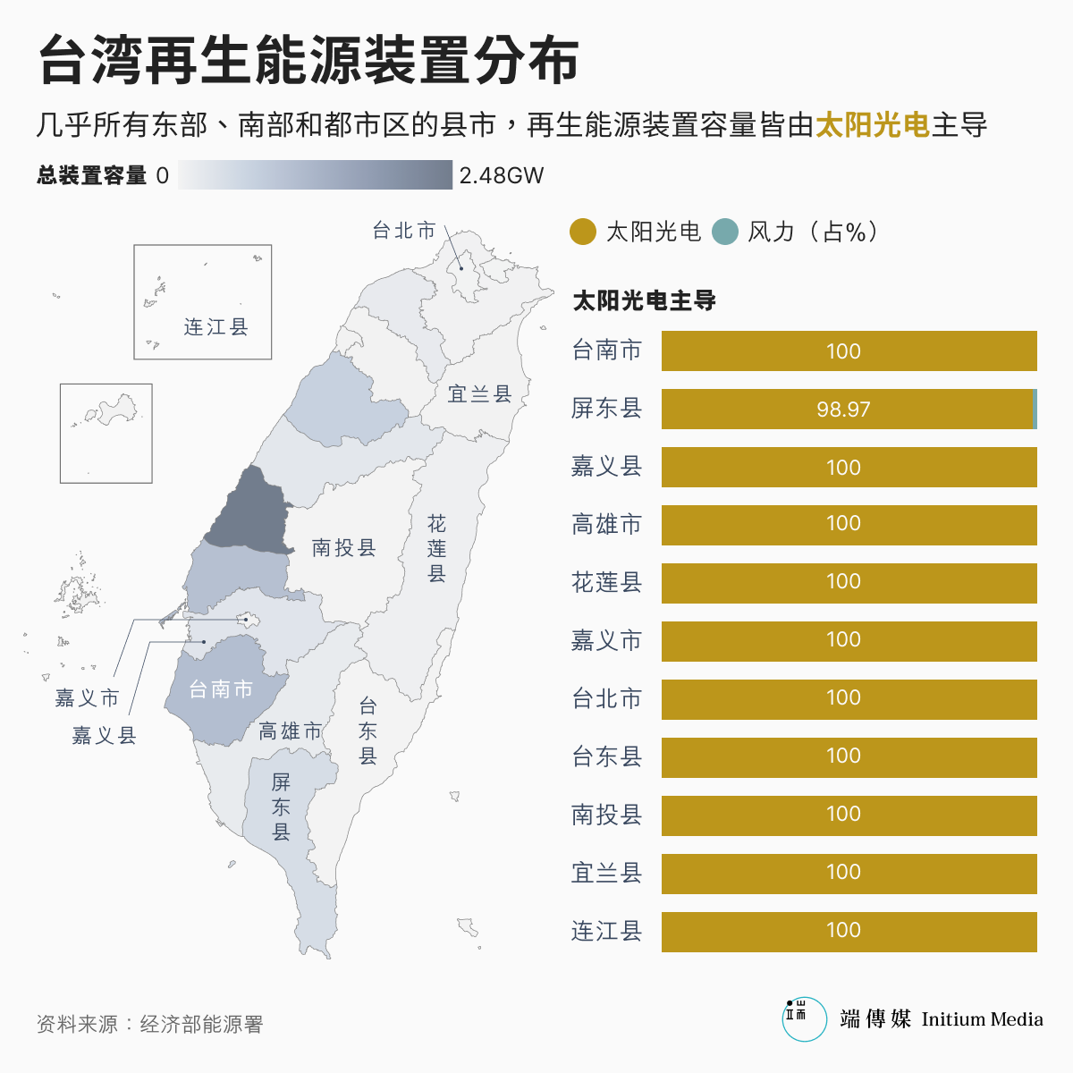 吊诡的是,停电灾情严重的云嘉一带,正是台湾太阳光电的主要设置地——理论上,当大电网因电厂或输电线路受损而停摆时,设有太阳光电等分散式电源的区域,应能自行产电、供应邻近用户所需。